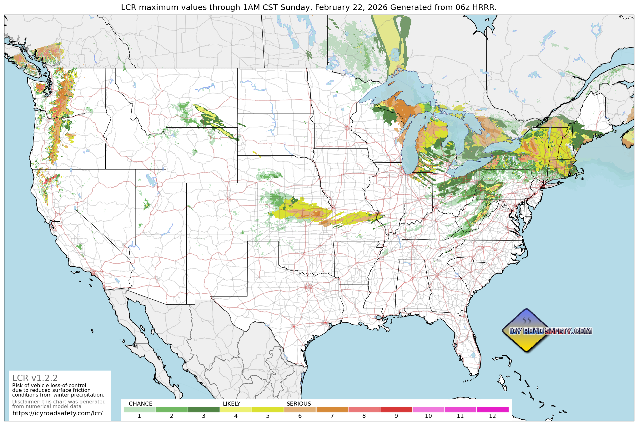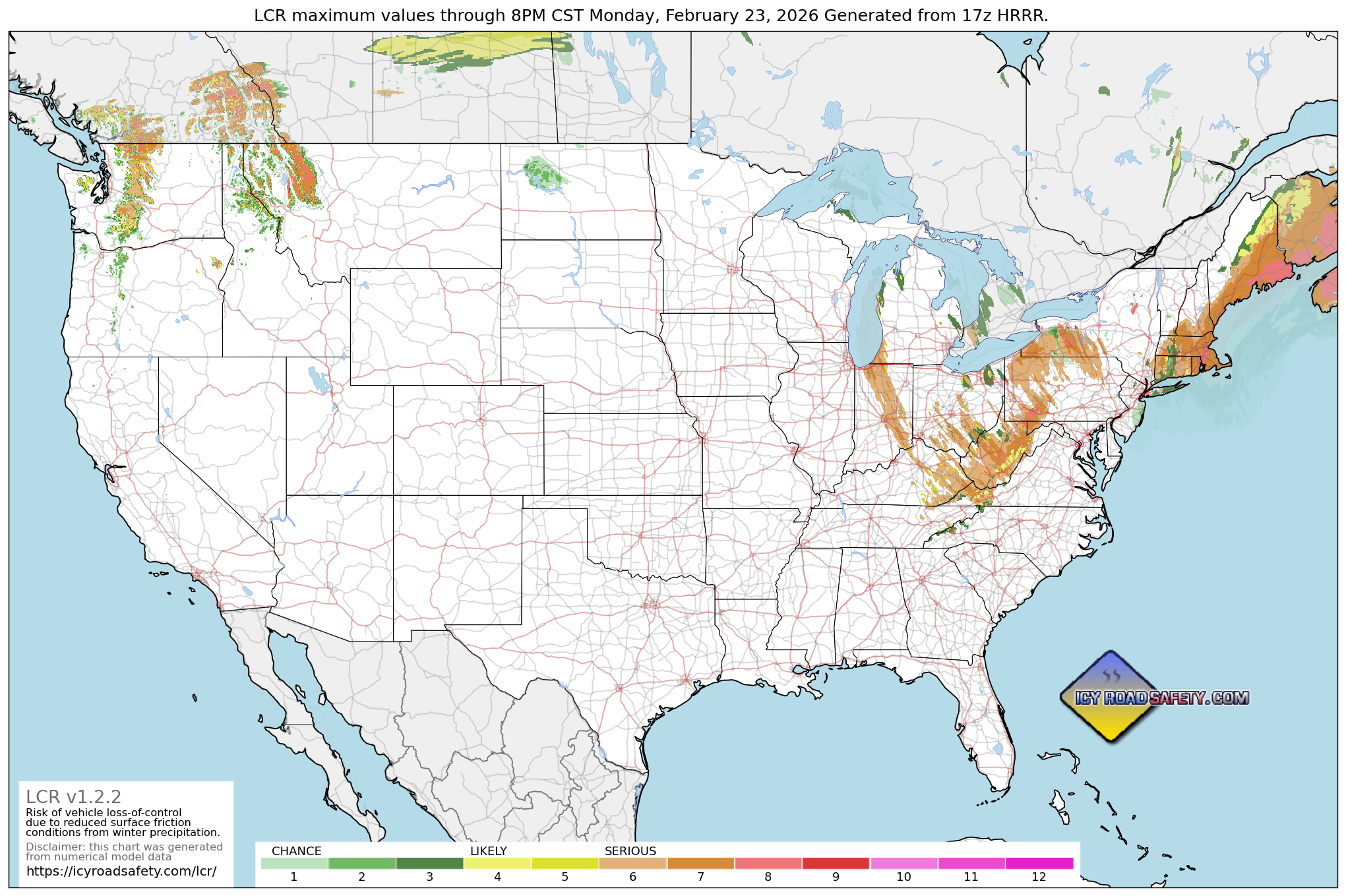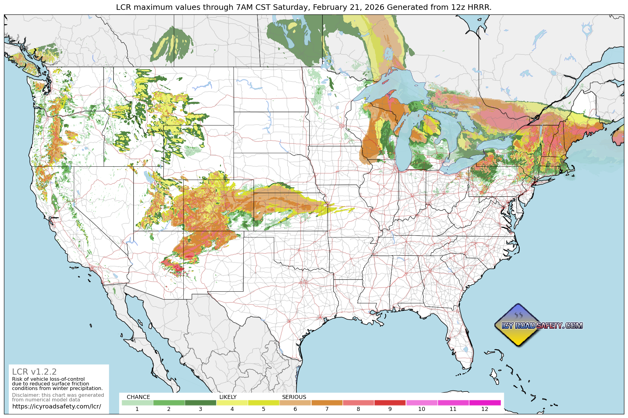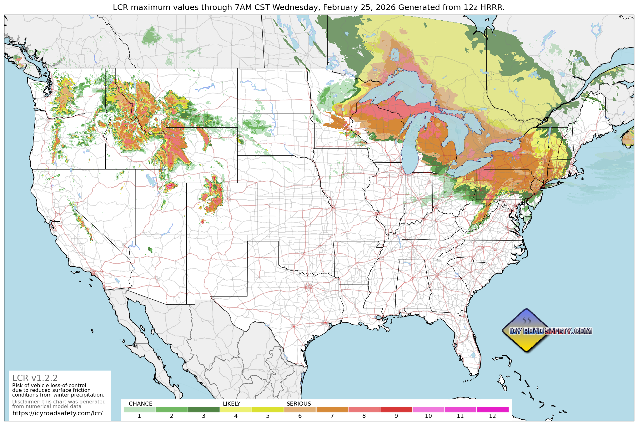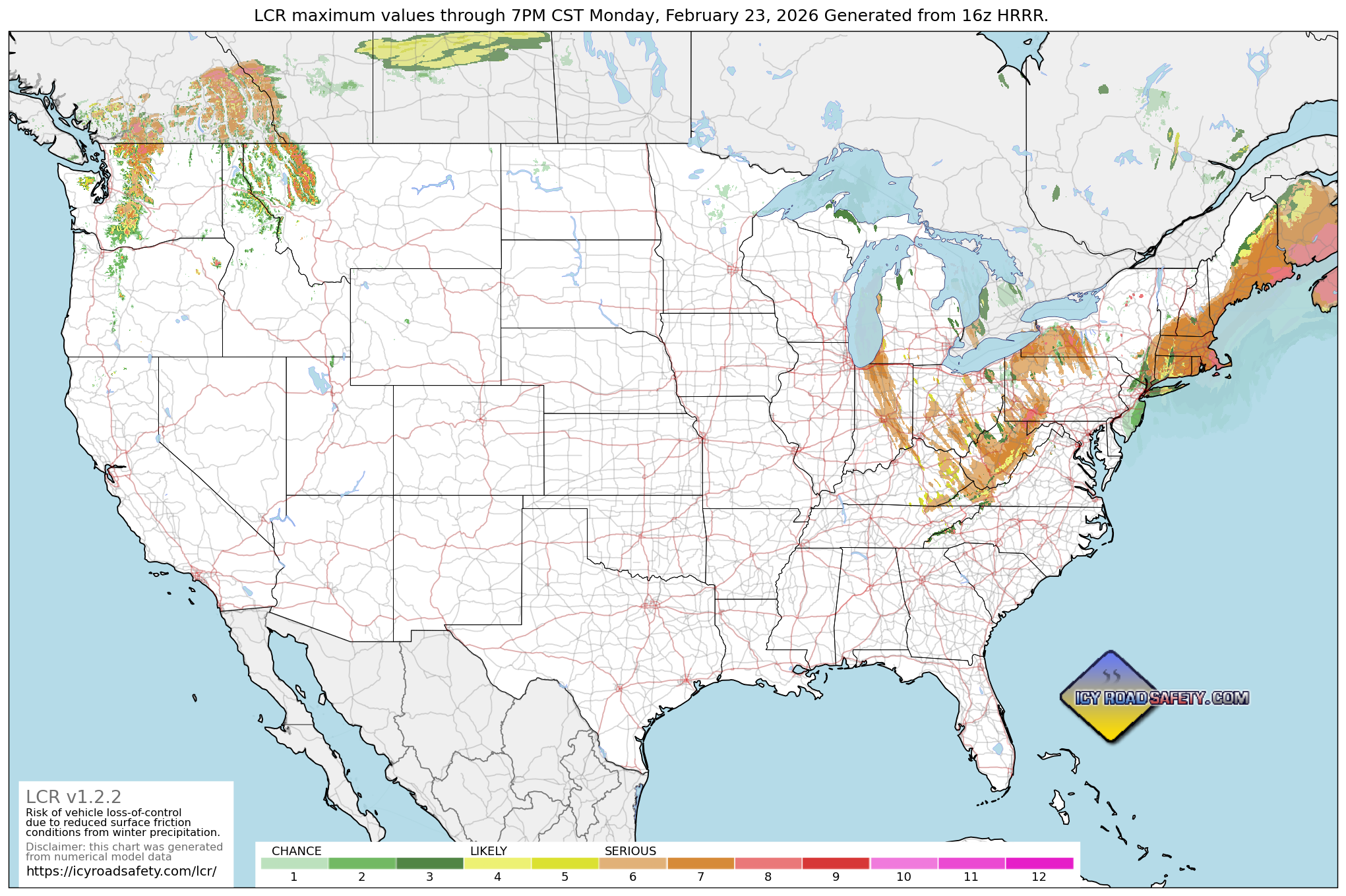 If your area is shown in a LCR risk area, it means the models are plotting conditions favorable for icy roads if the forecasted precipitation actually does occur.