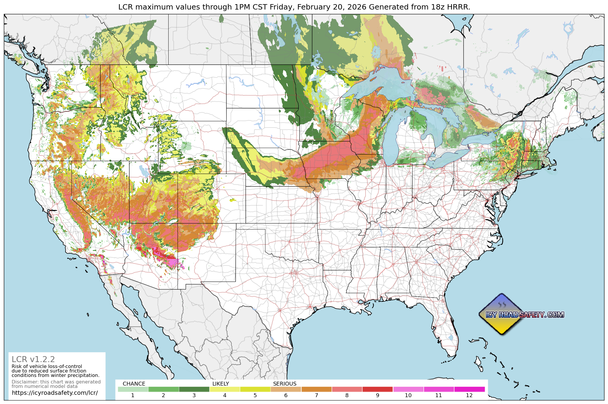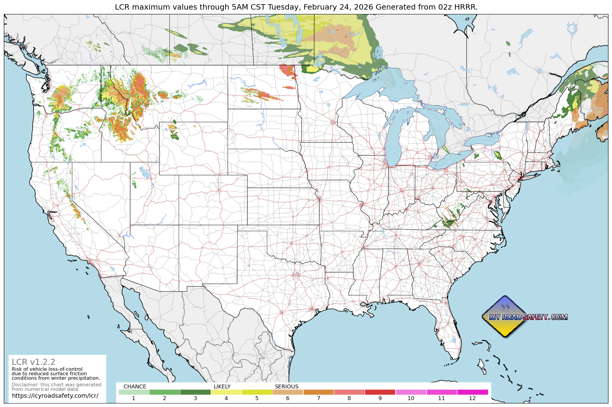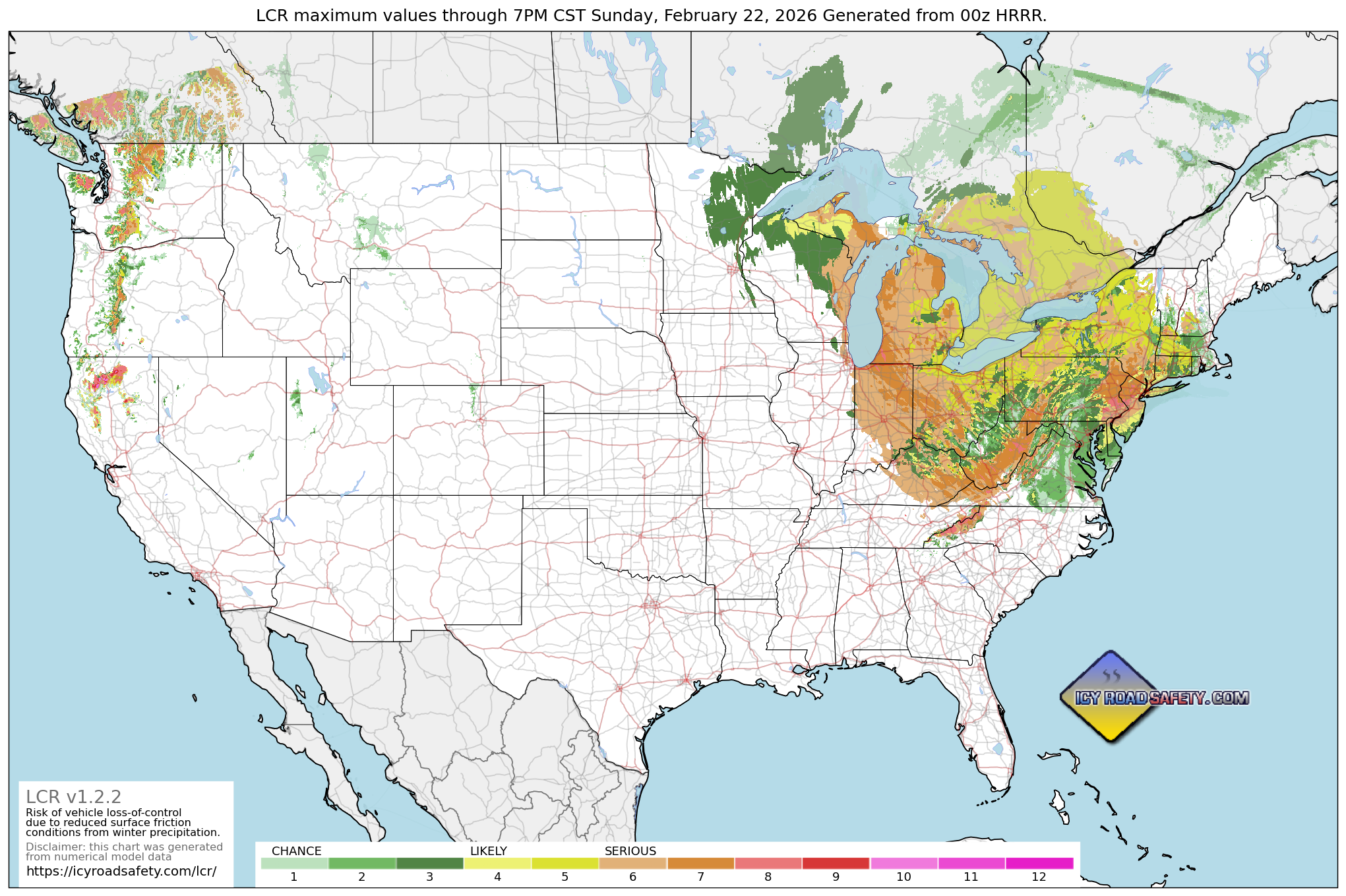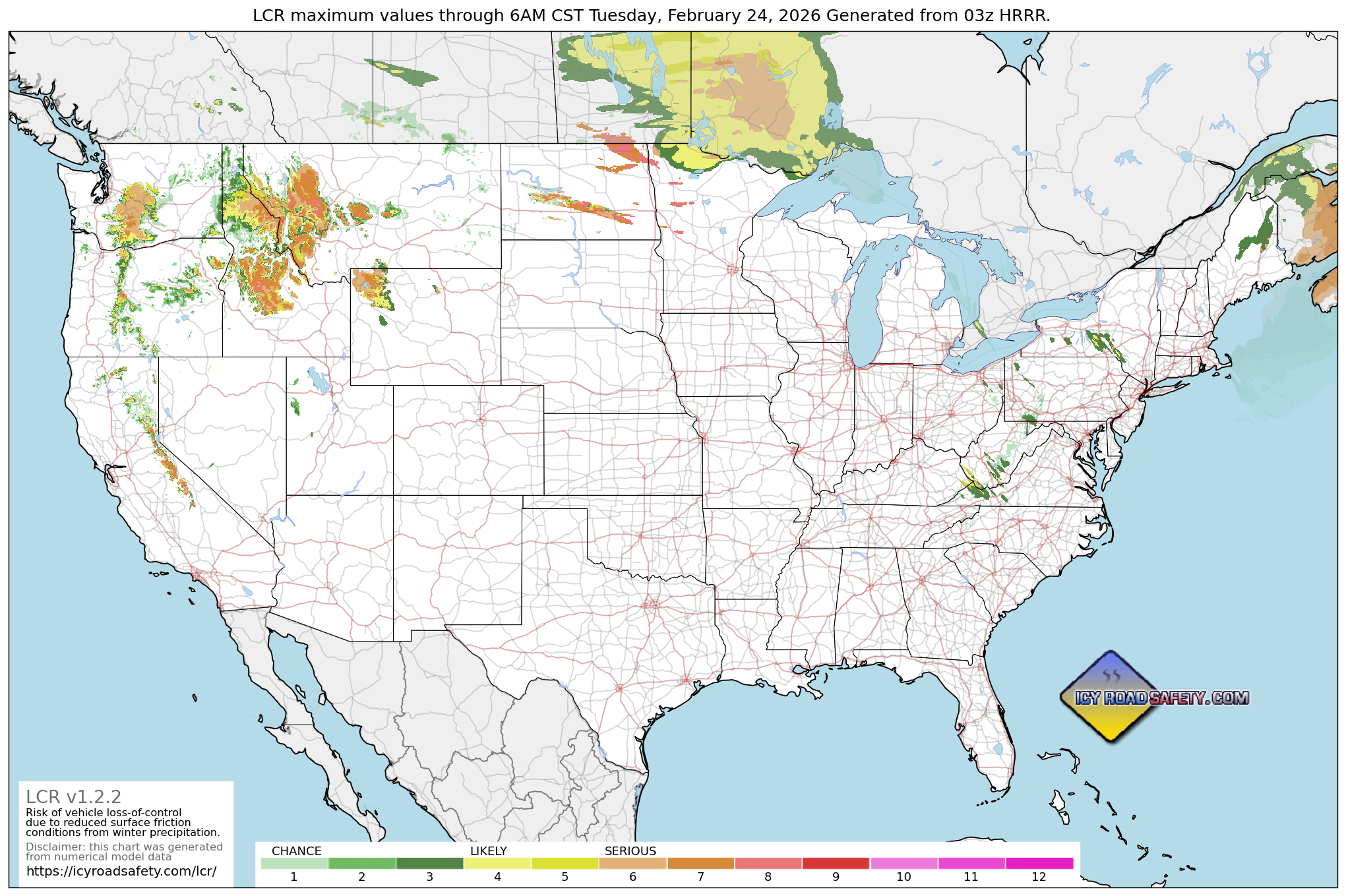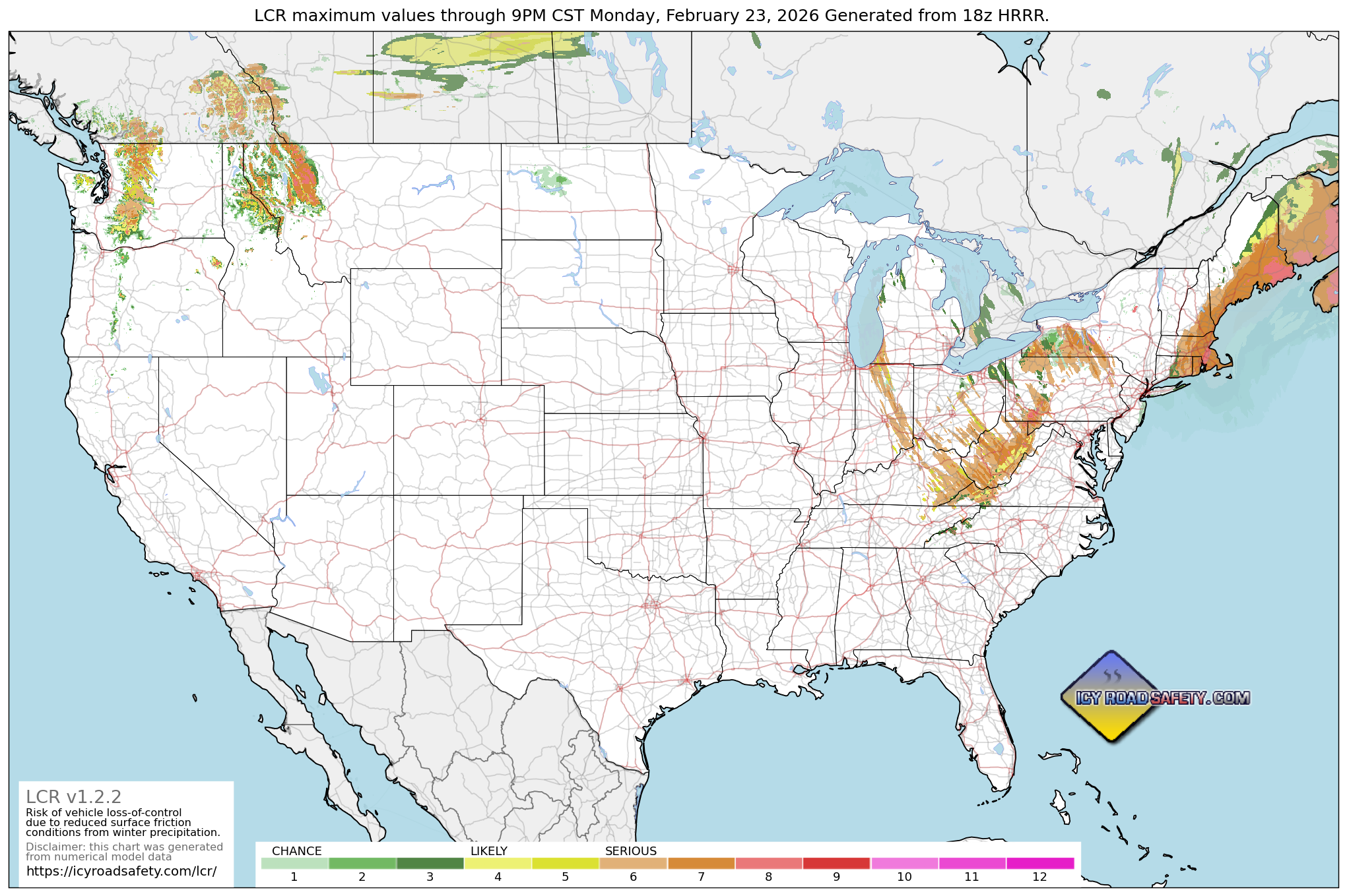 If your area is shown in a LCR risk area, it means the models are plotting conditions favorable for icy roads if the forecasted precipitation actually does occur.