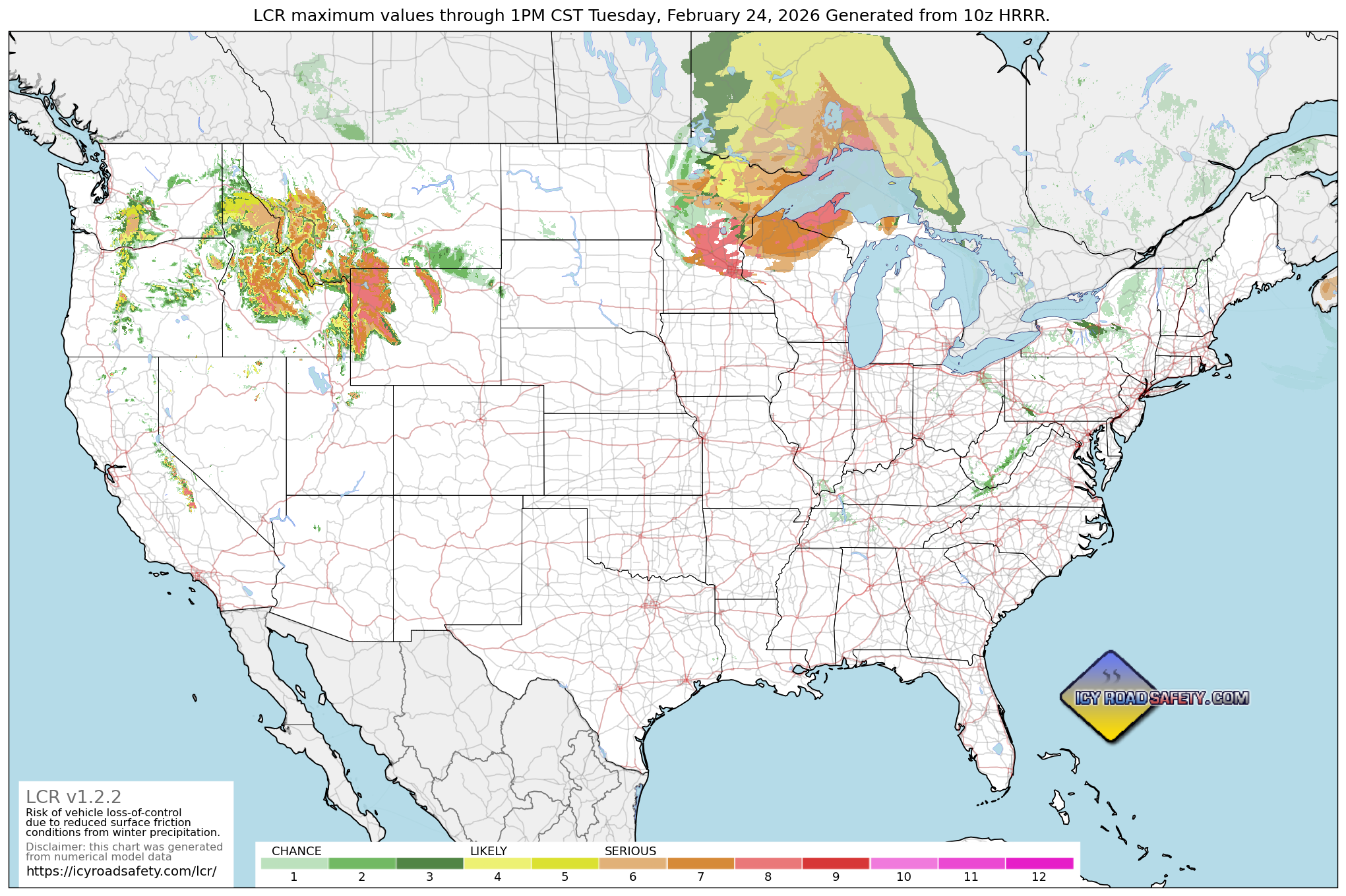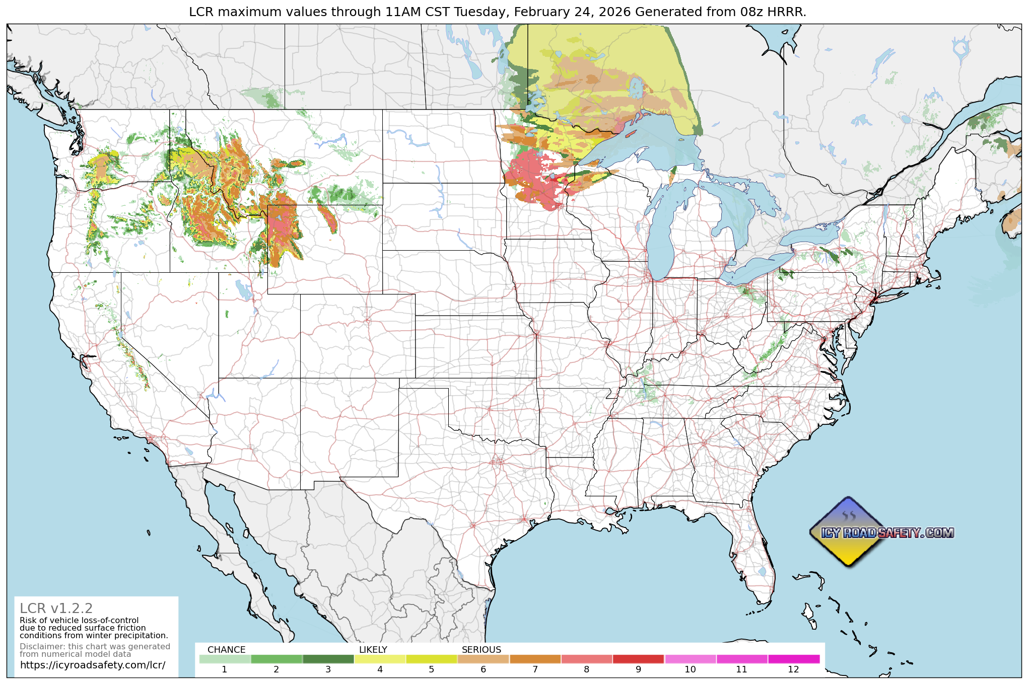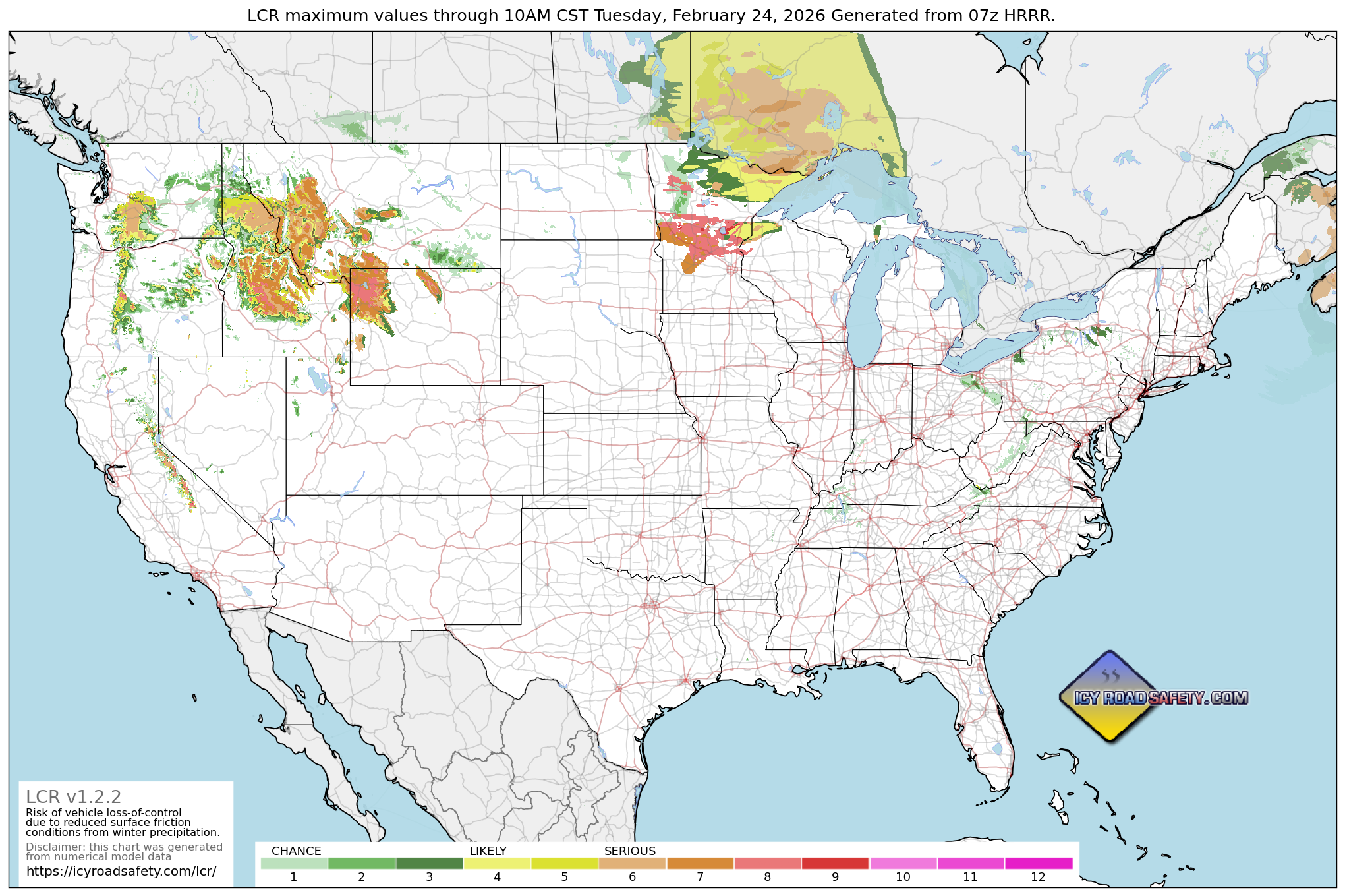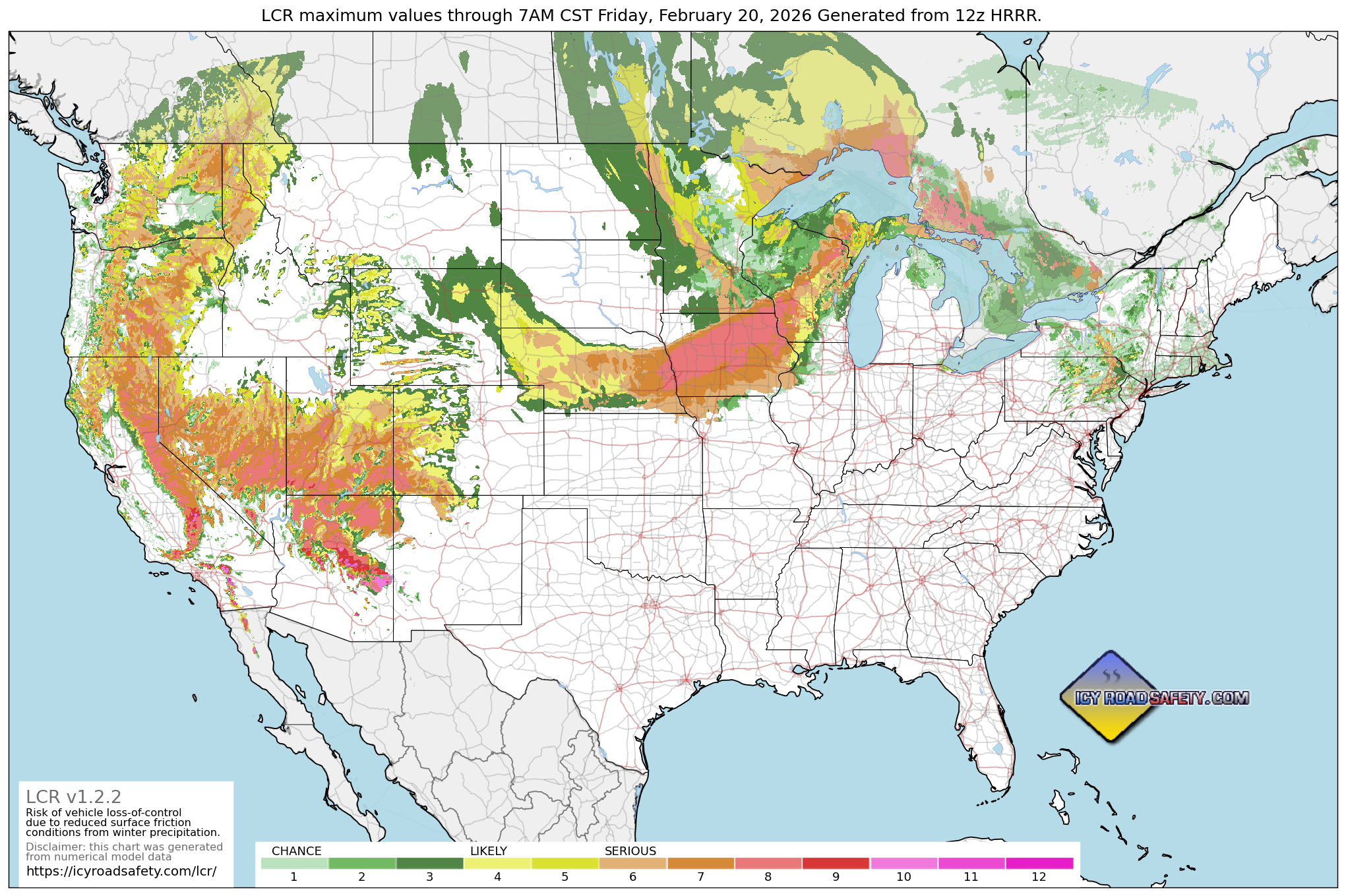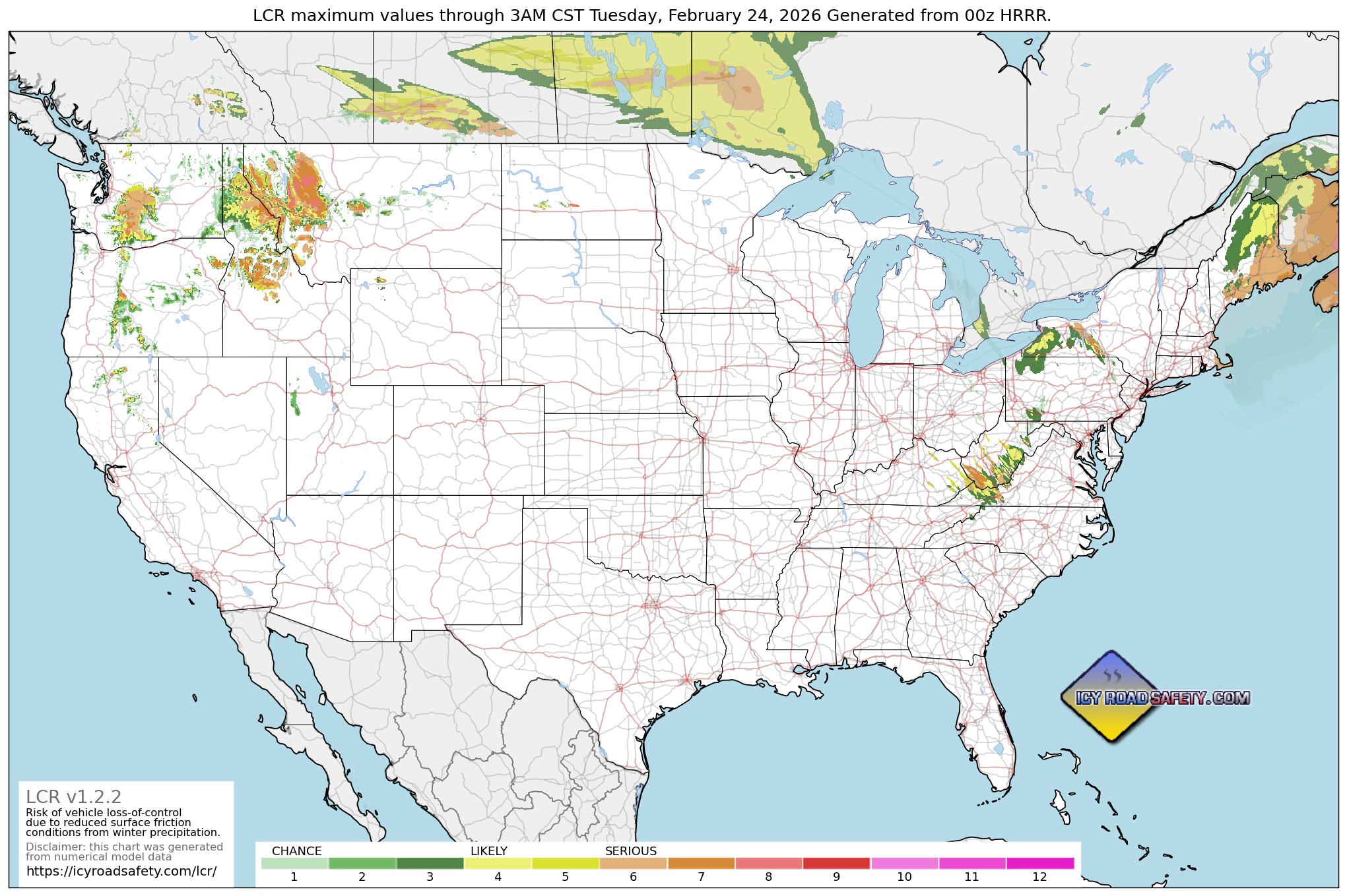 If your area is shown in a LCR risk area, it means the models are plotting conditions favorable for icy roads if the forecasted precipitation actually does occur.