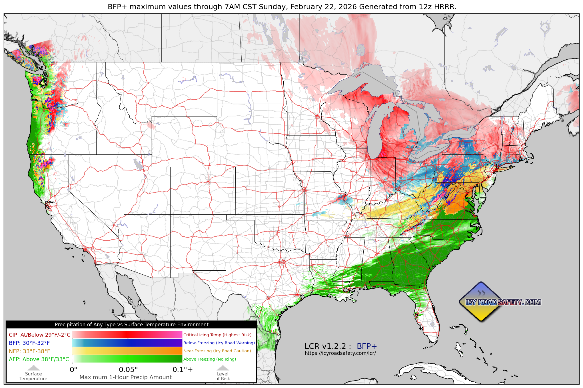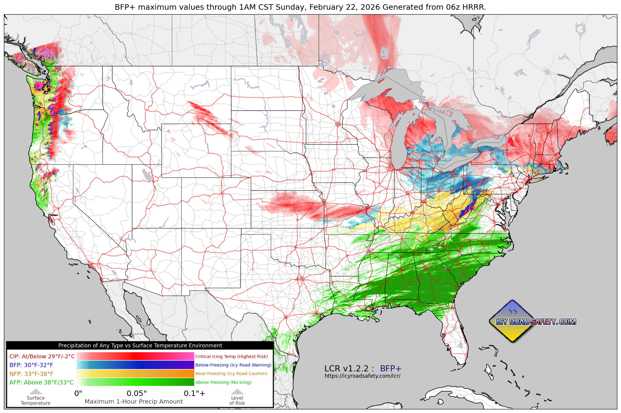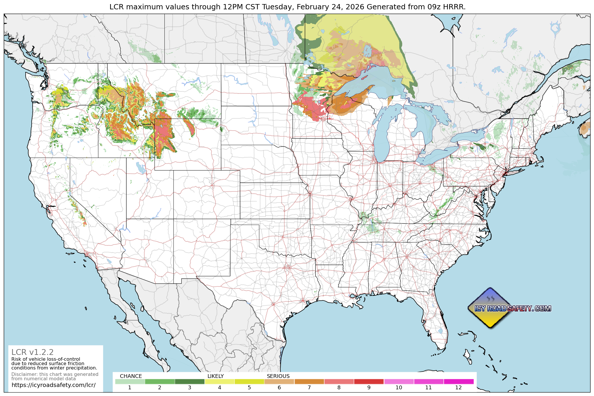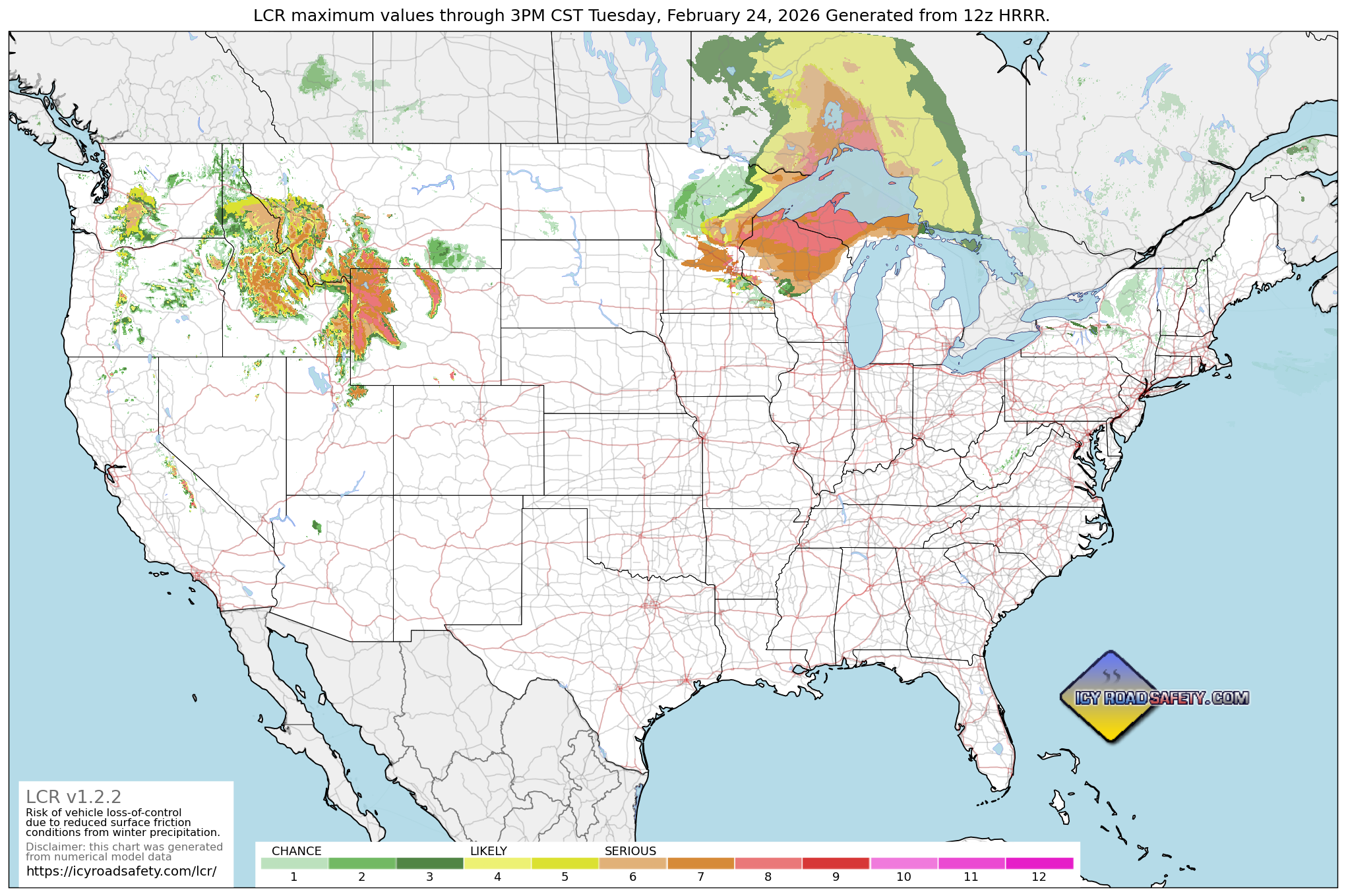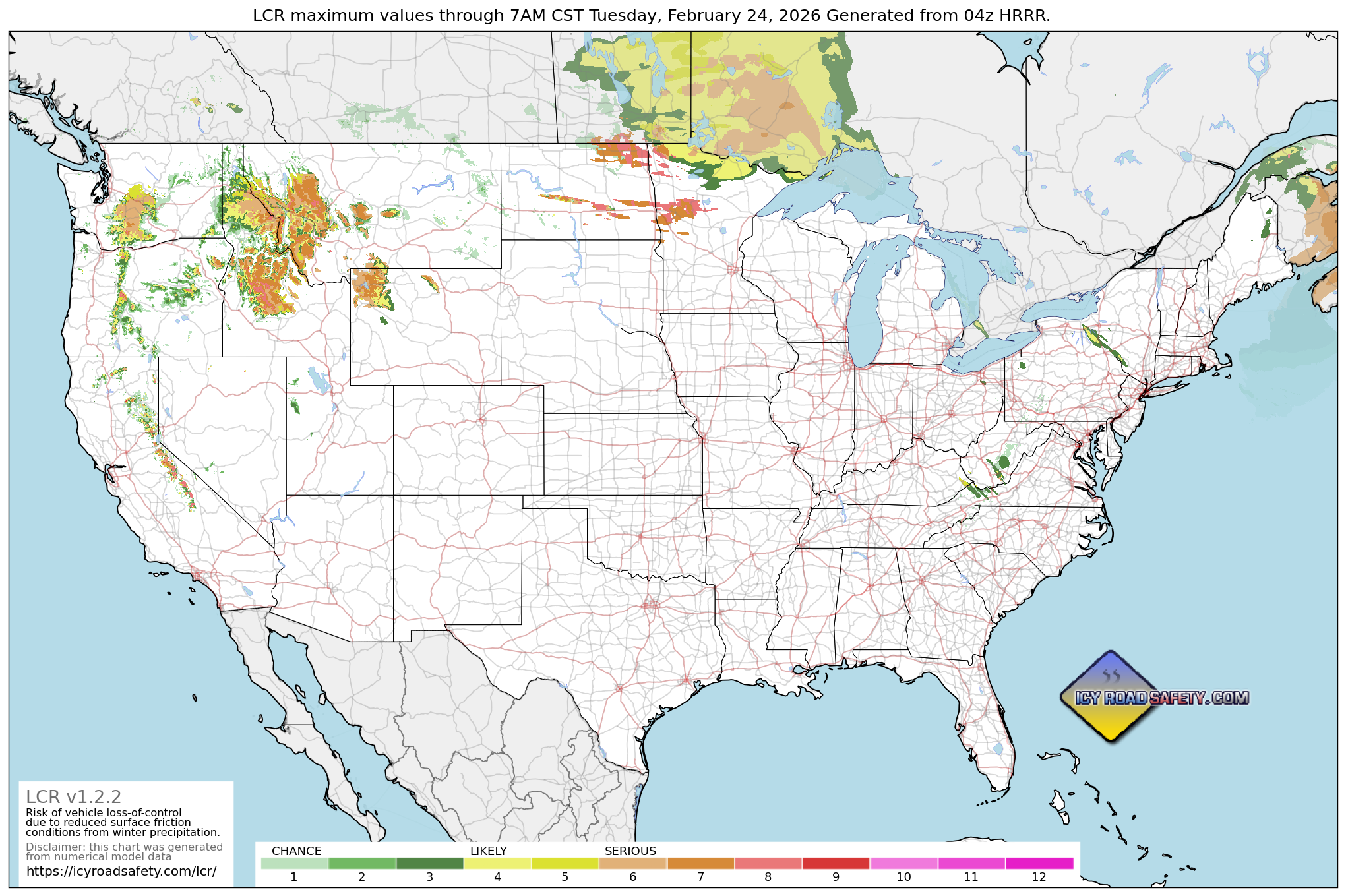 If your area is shown in a LCR risk area, it means the models are plotting conditions favorable for icy roads if the forecasted precipitation actually does occur.
