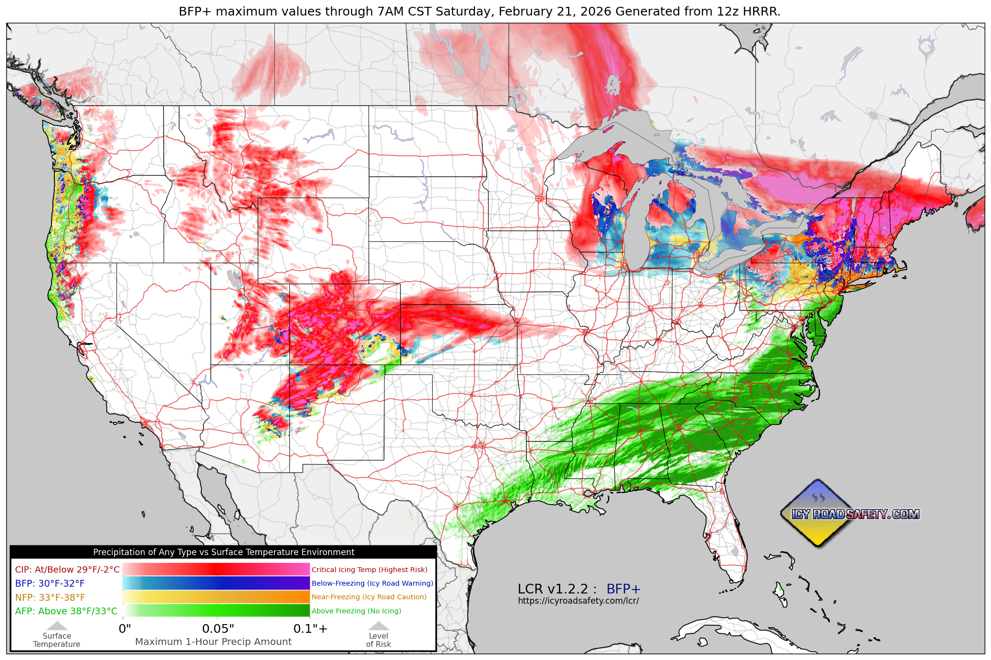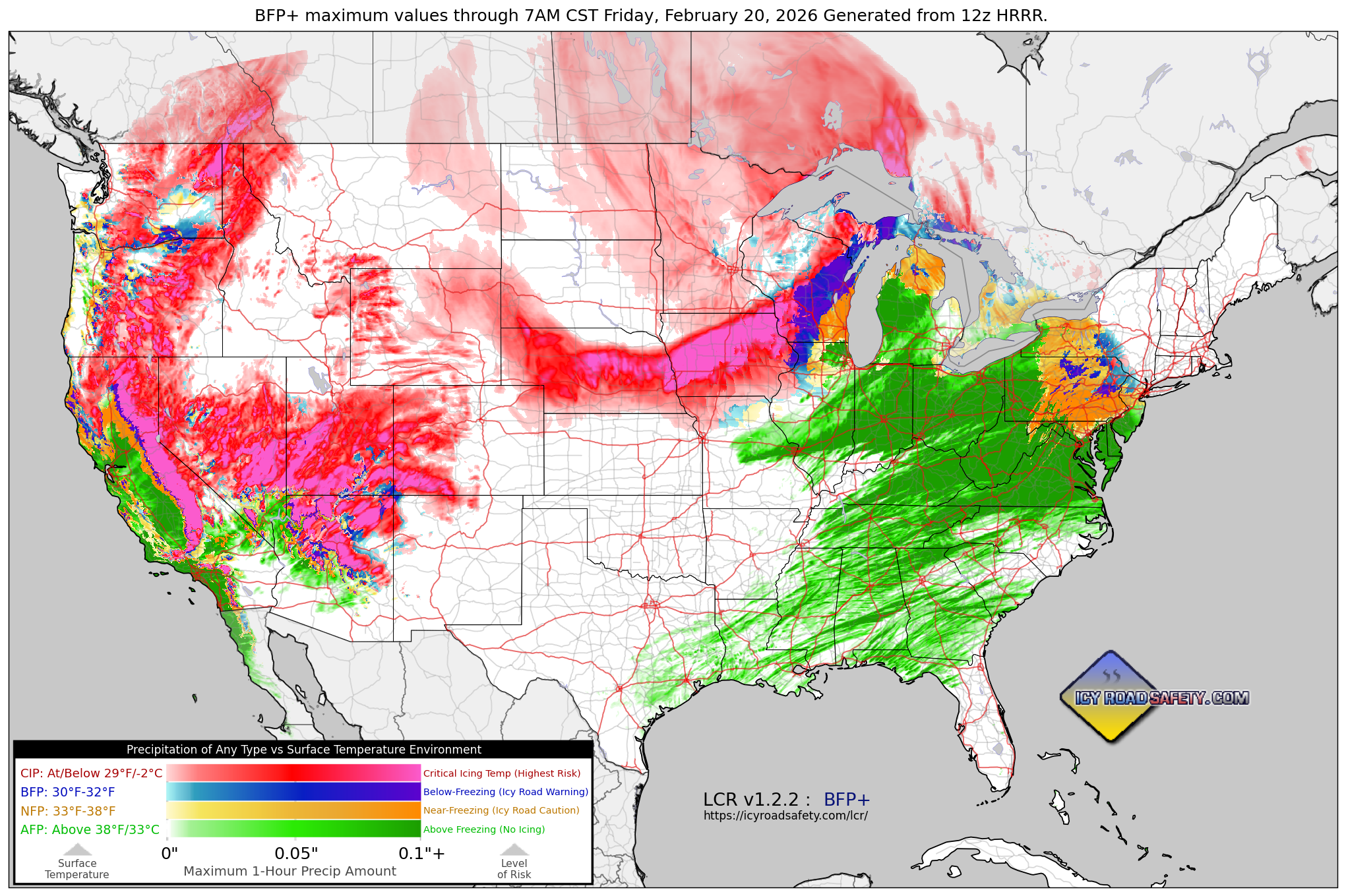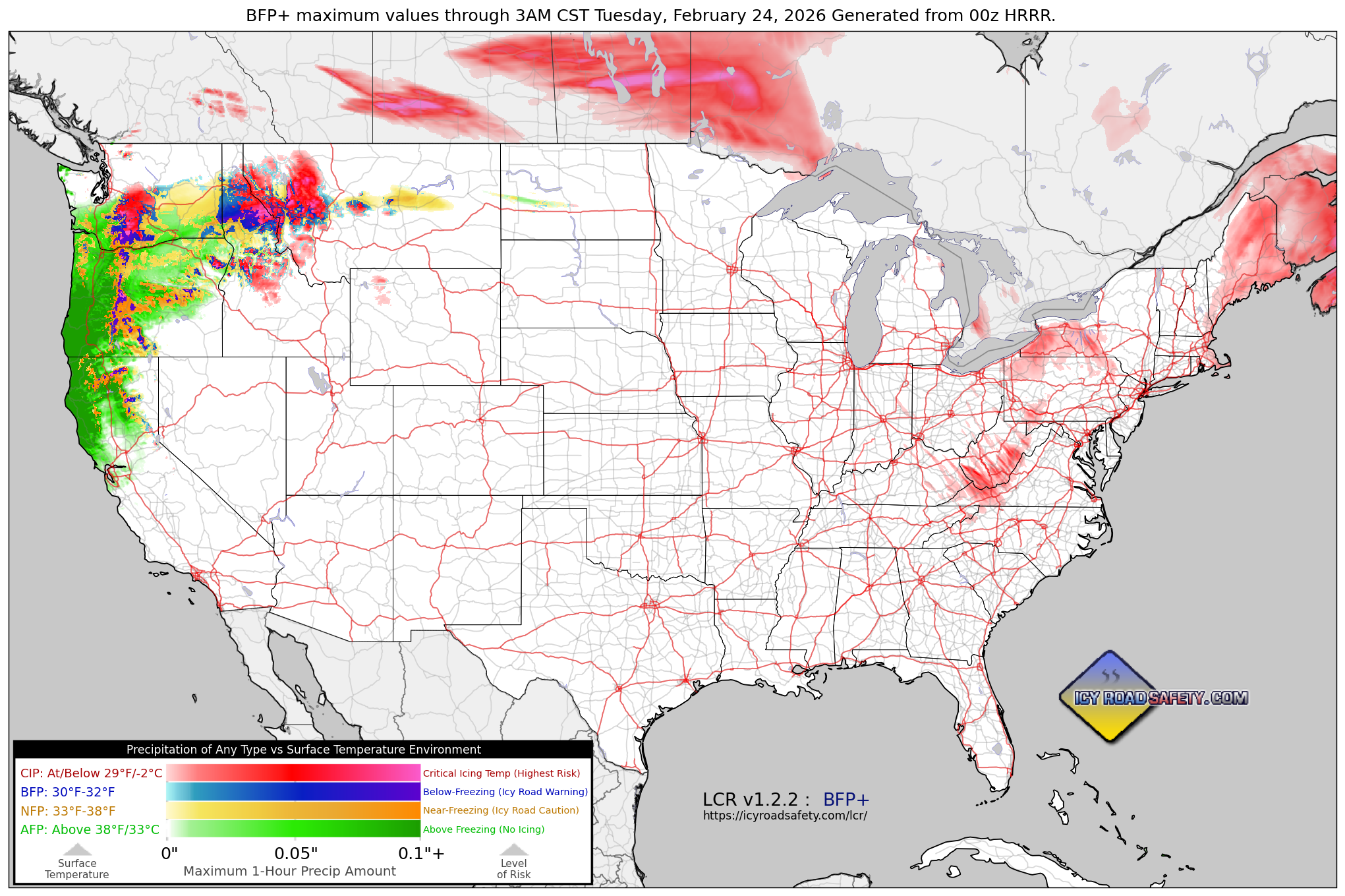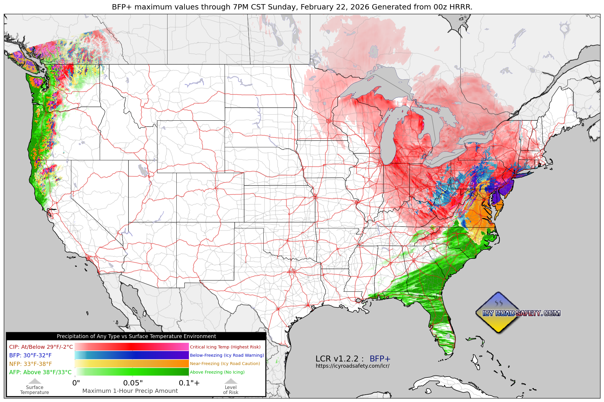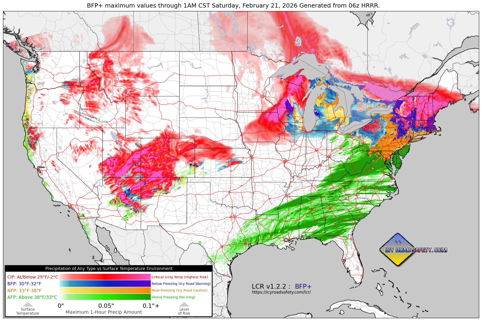 If your area is shown in a LCR risk area, it means the models are plotting conditions favorable for icy roads if the forecasted precipitation actually does occur.
