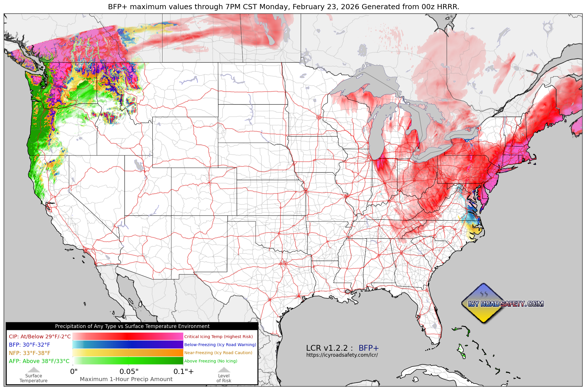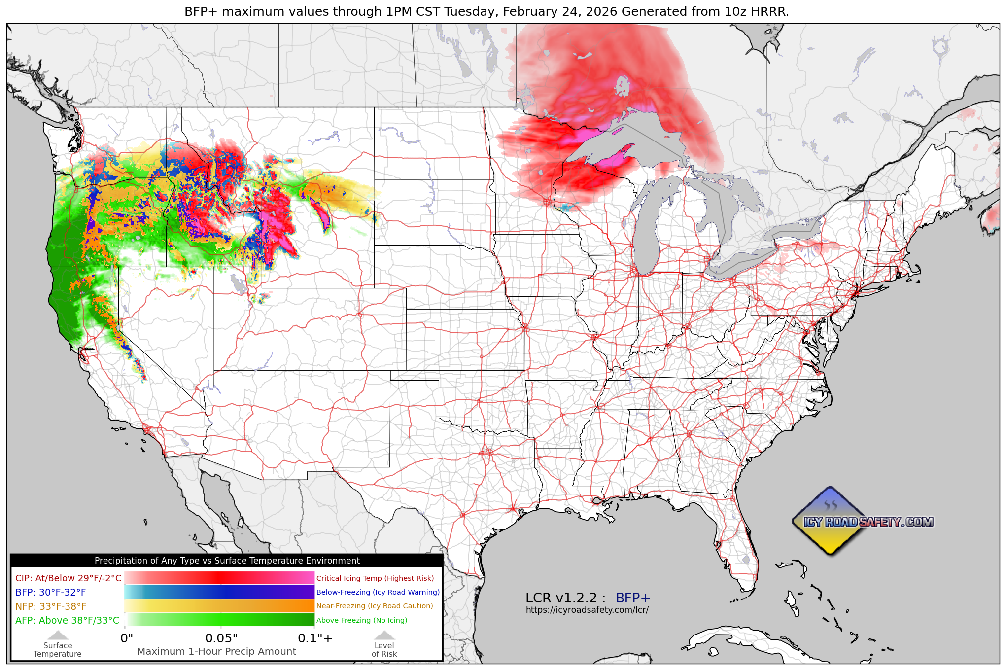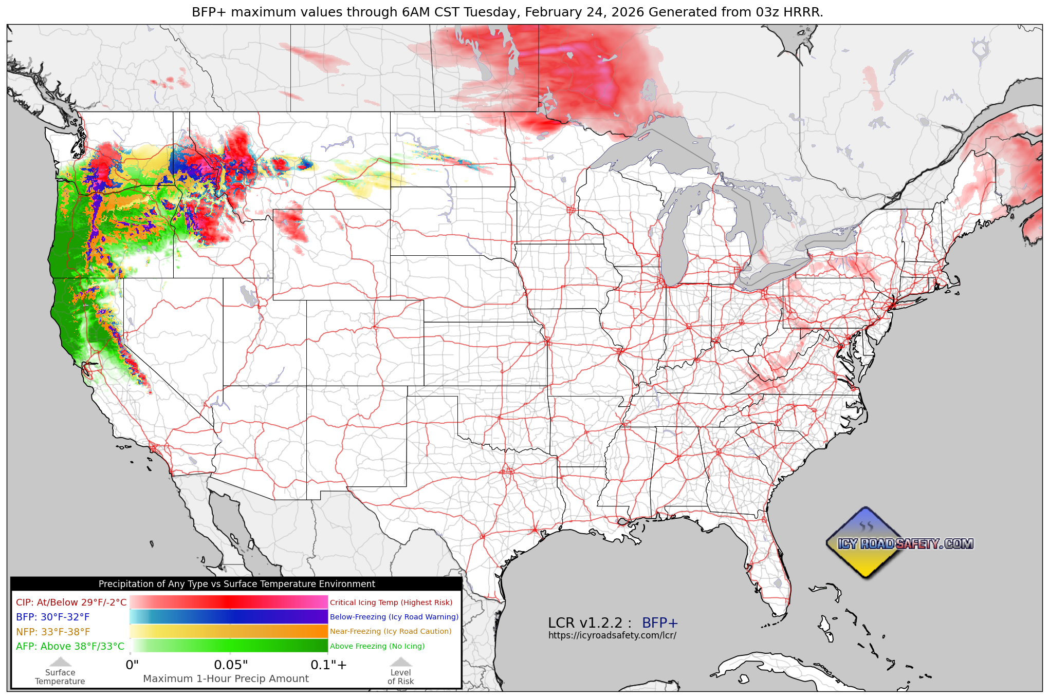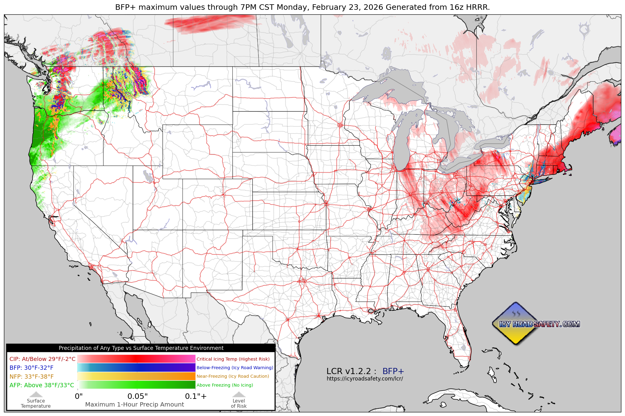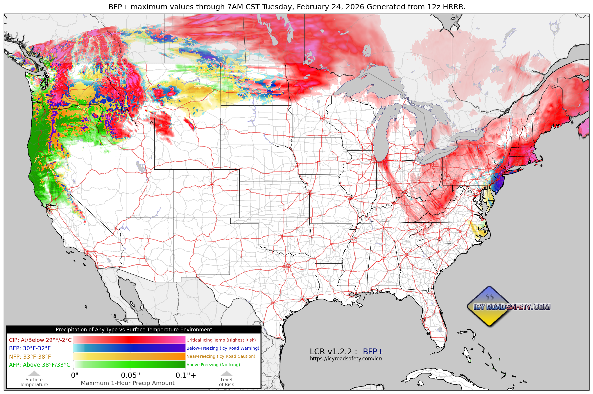 If your area is shown in a LCR risk area, it means the models are plotting conditions favorable for icy roads if the forecasted precipitation actually does occur.