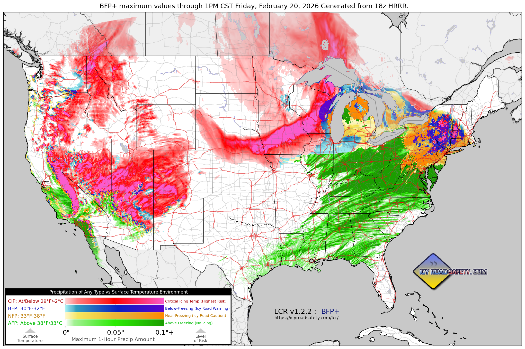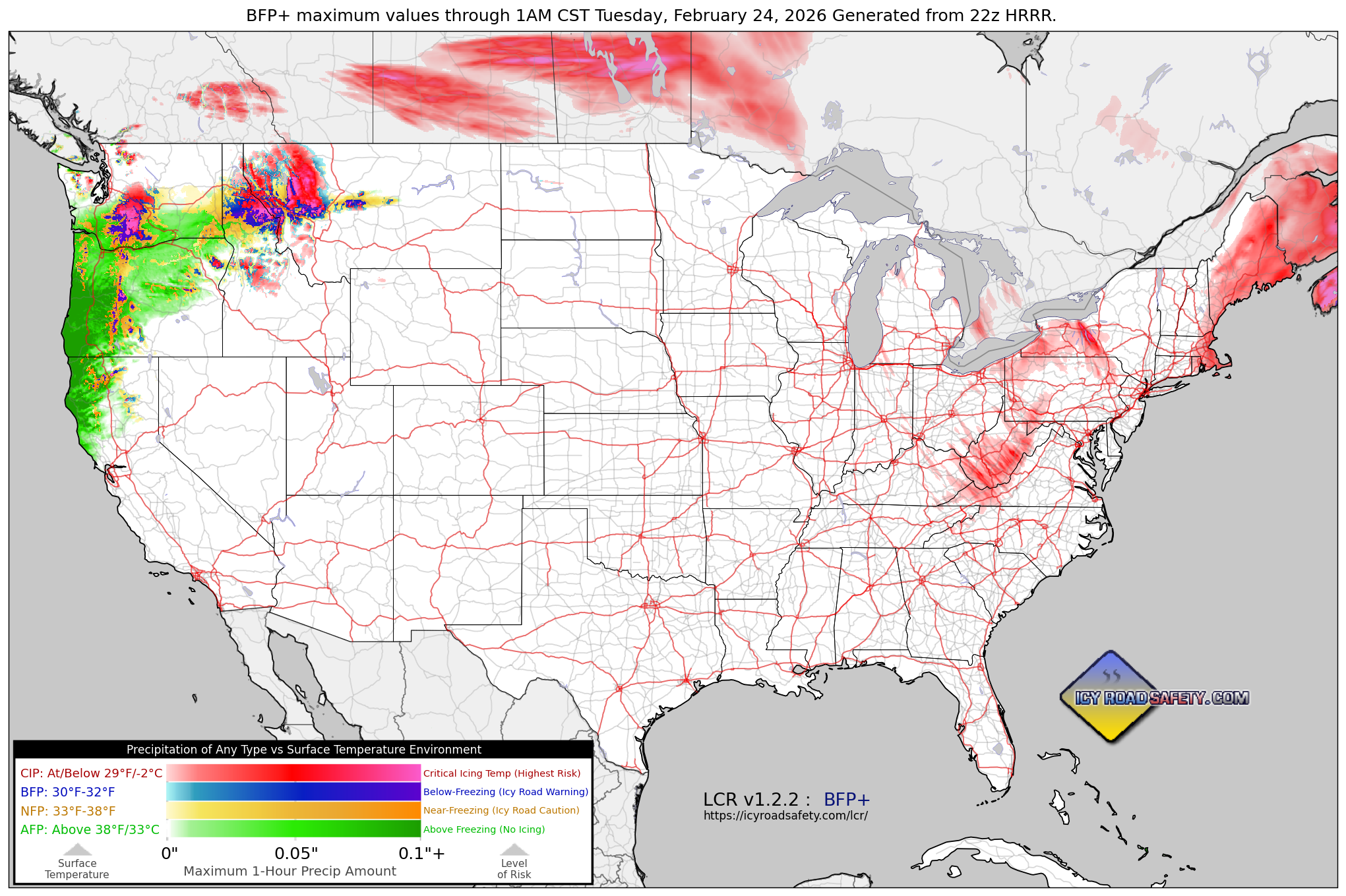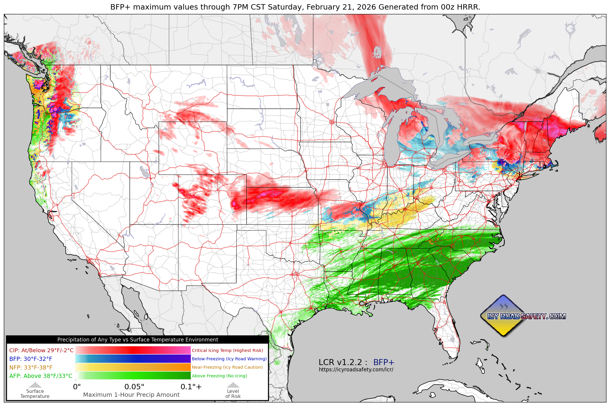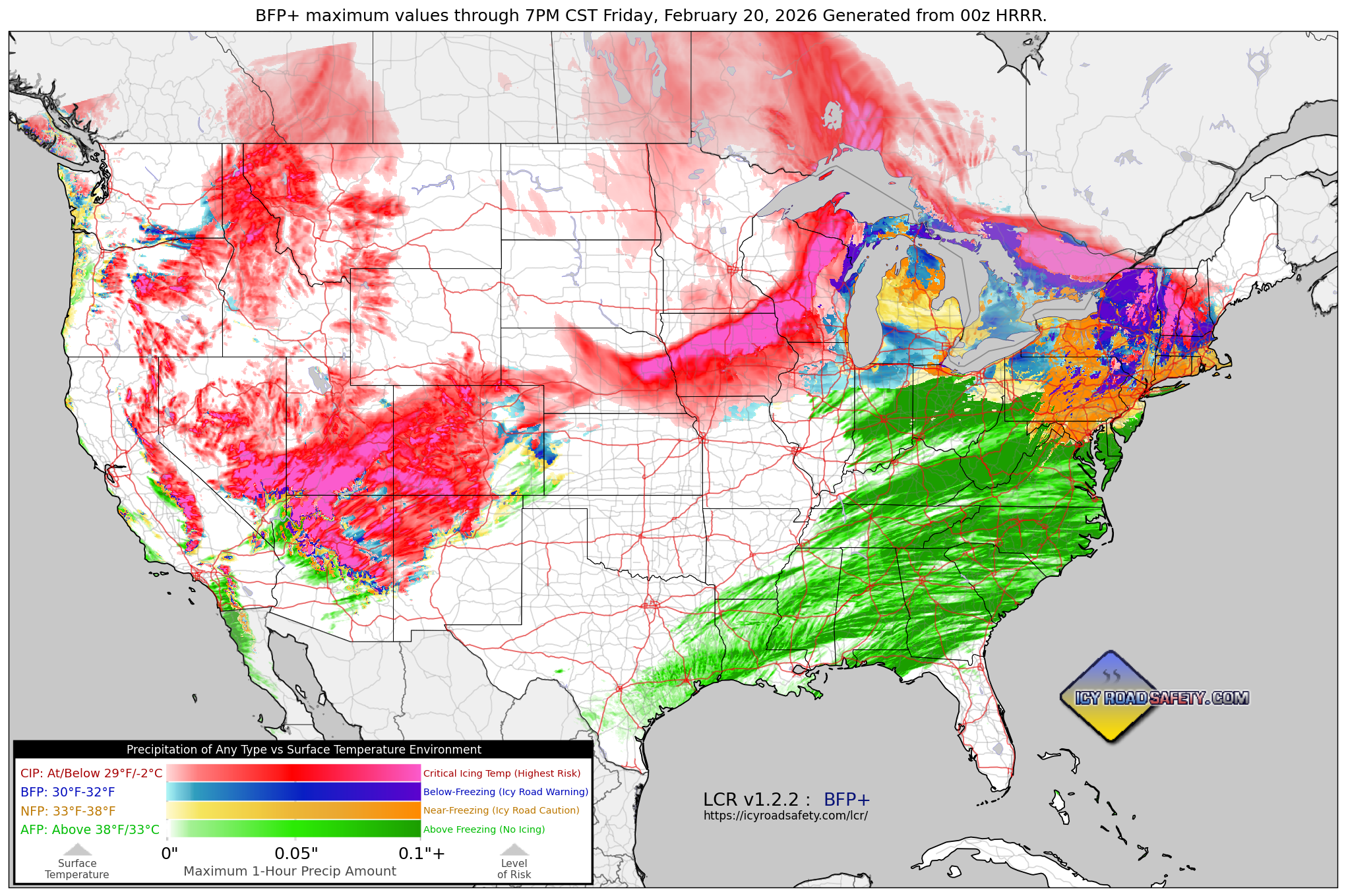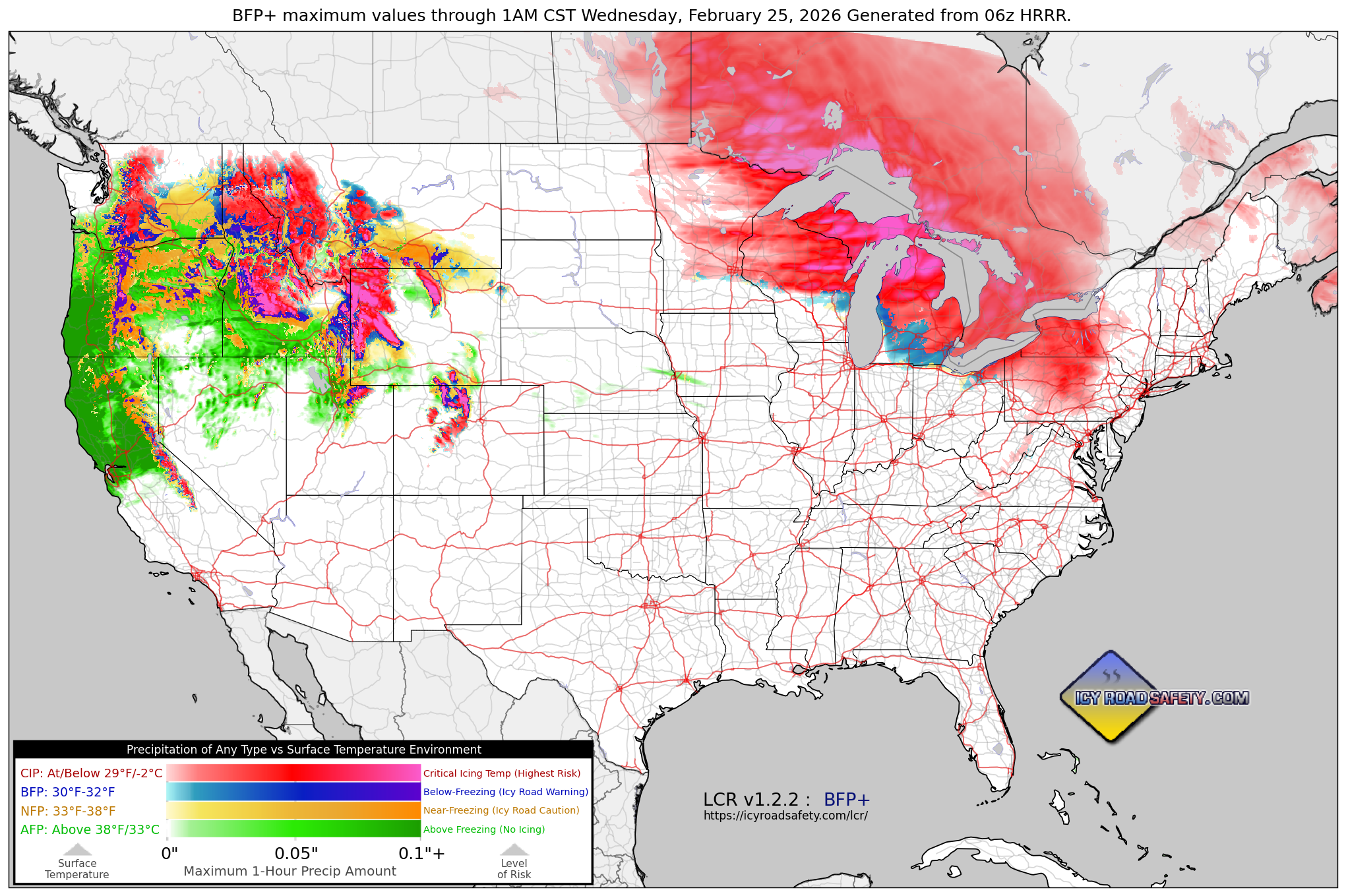 If your area is shown in a LCR risk area, it means the models are plotting conditions favorable for icy roads if the forecasted precipitation actually does occur.