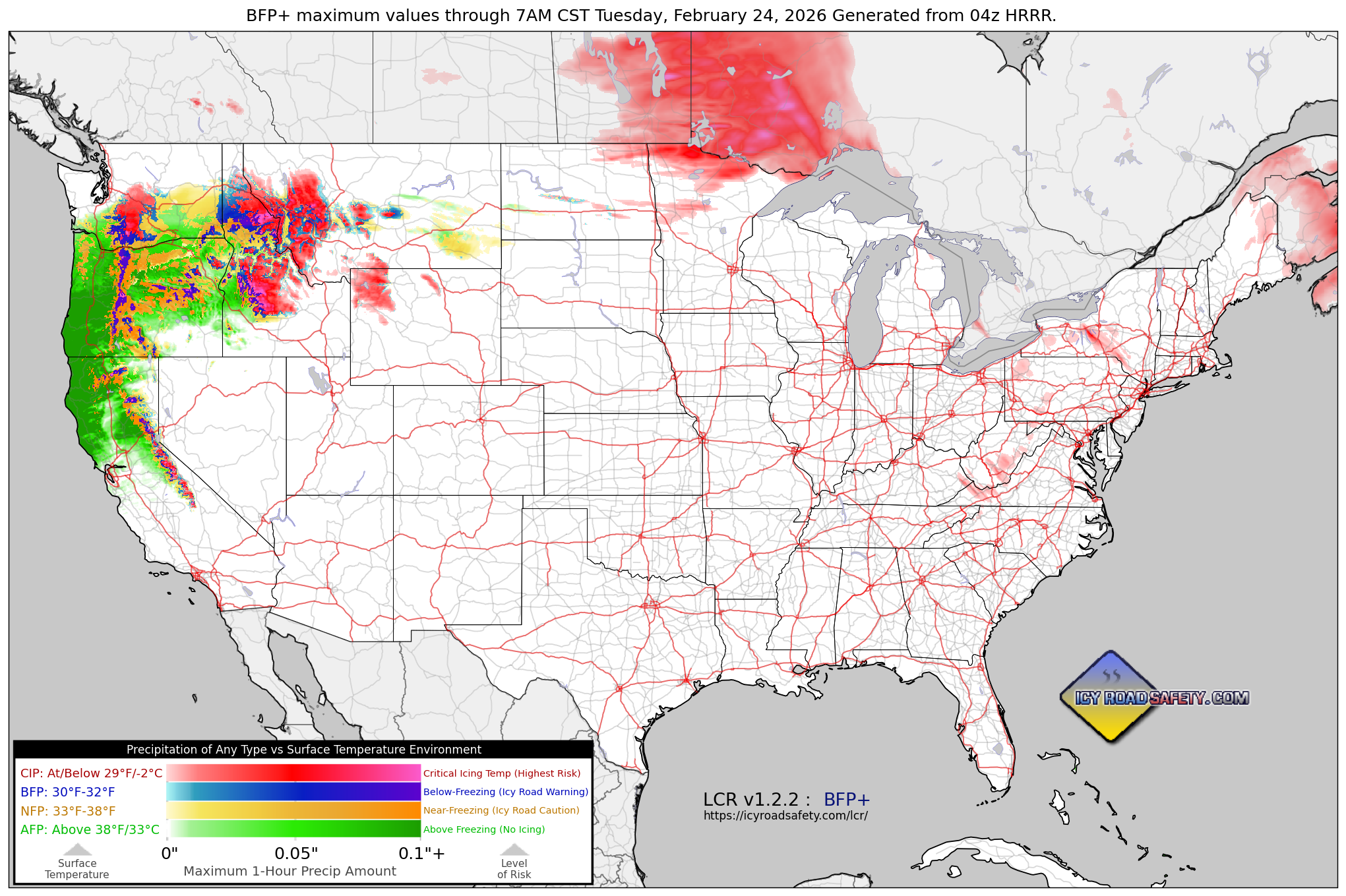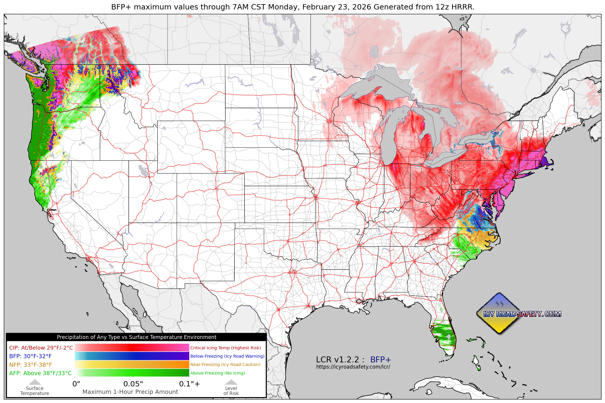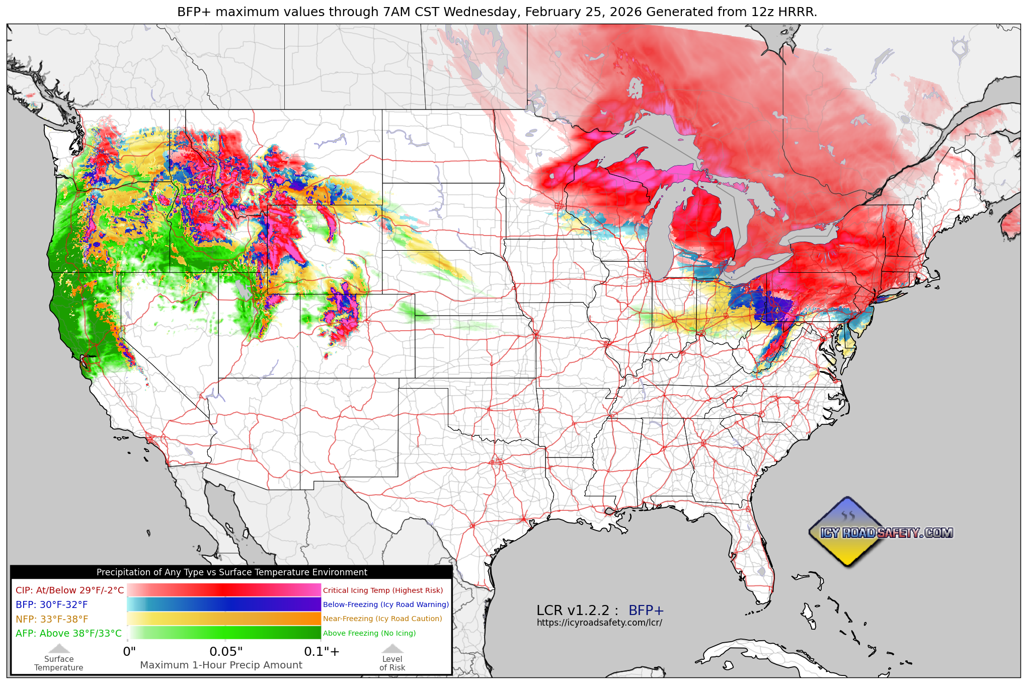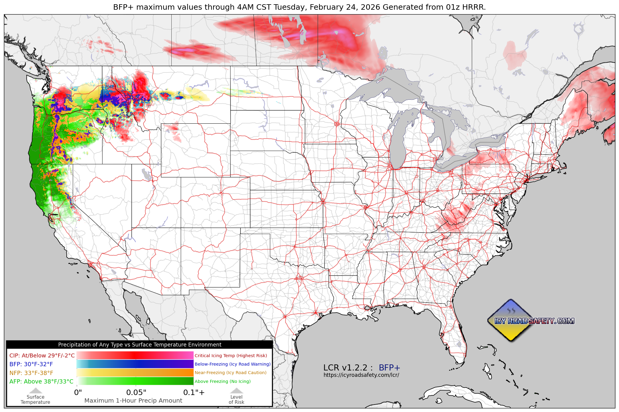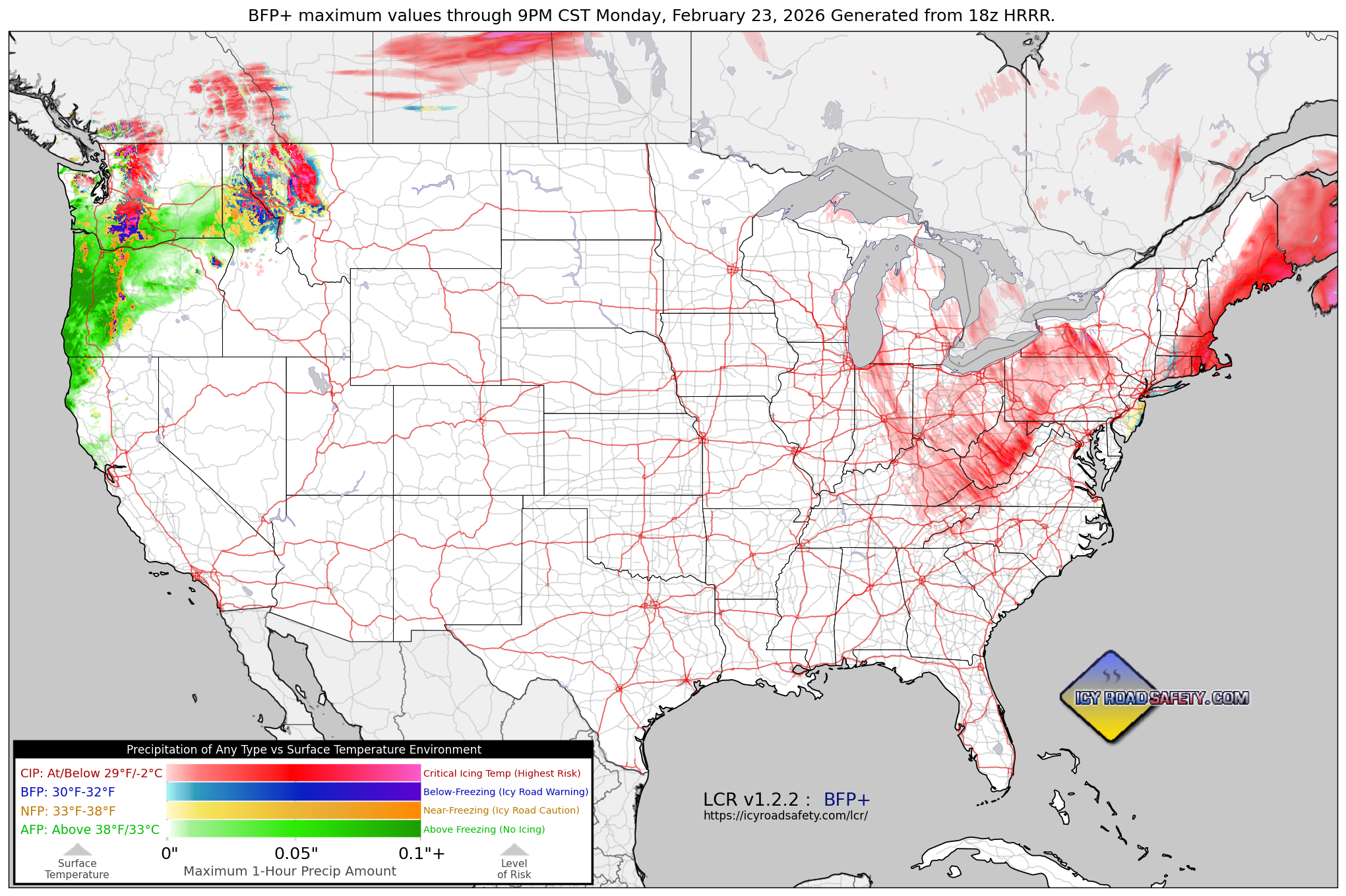 If your area is shown in a LCR risk area, it means the models are plotting conditions favorable for icy roads if the forecasted precipitation actually does occur.