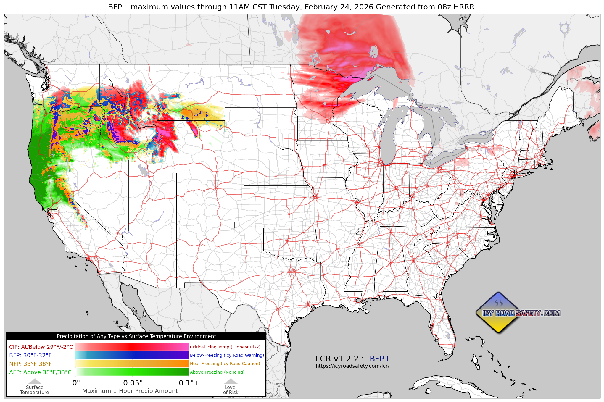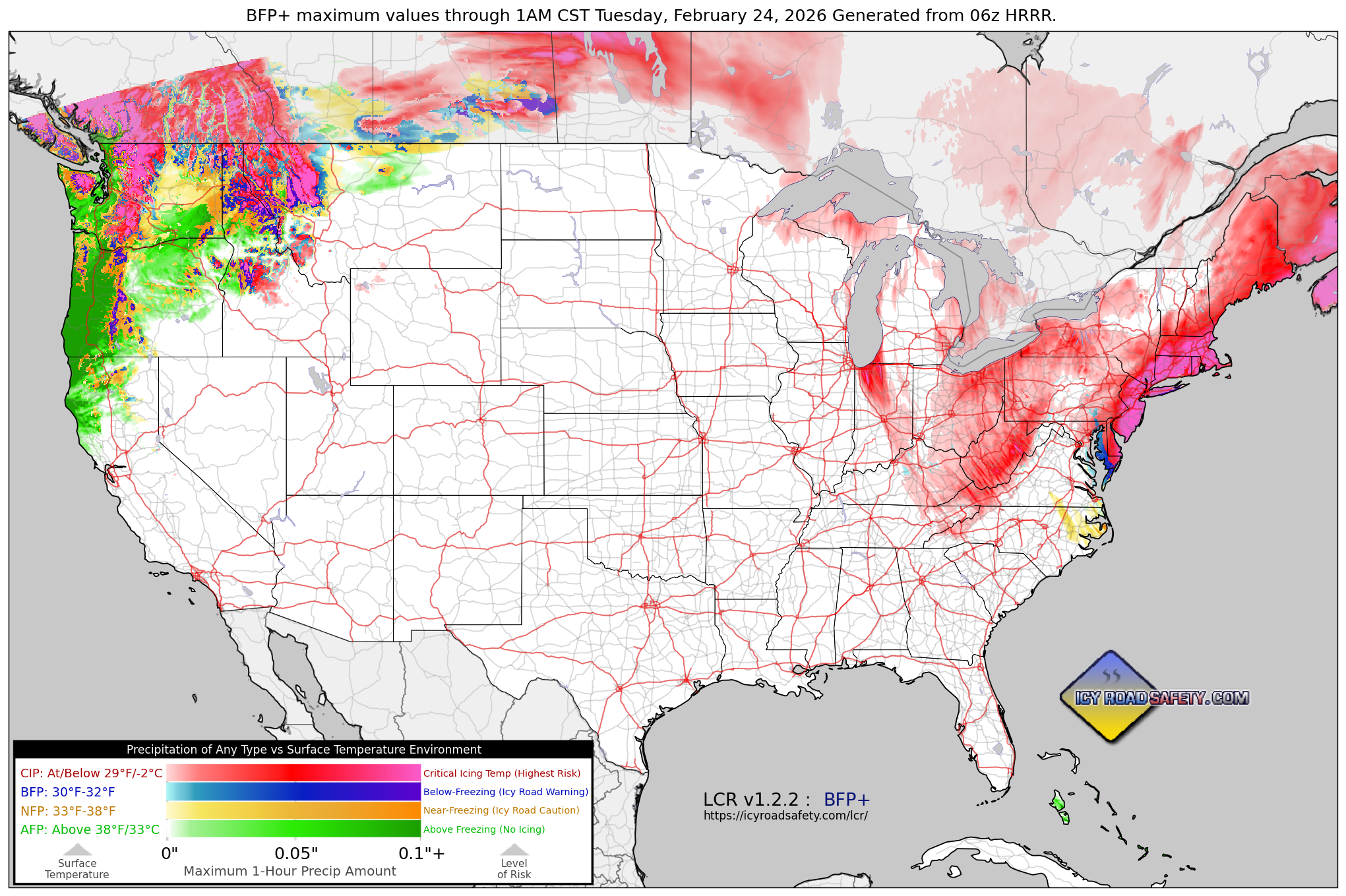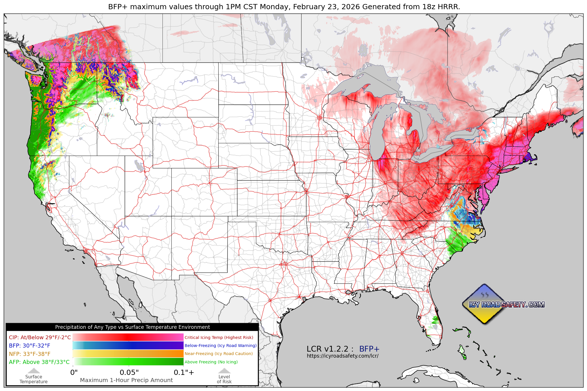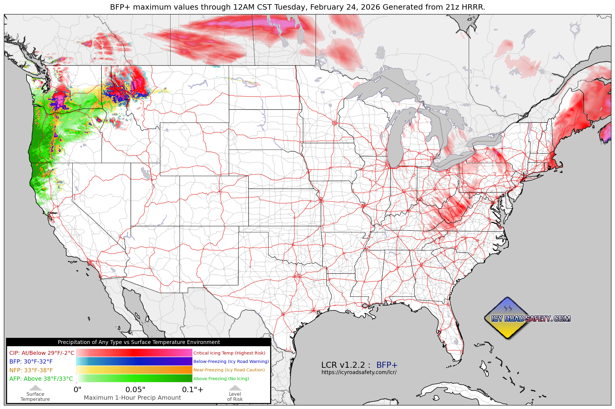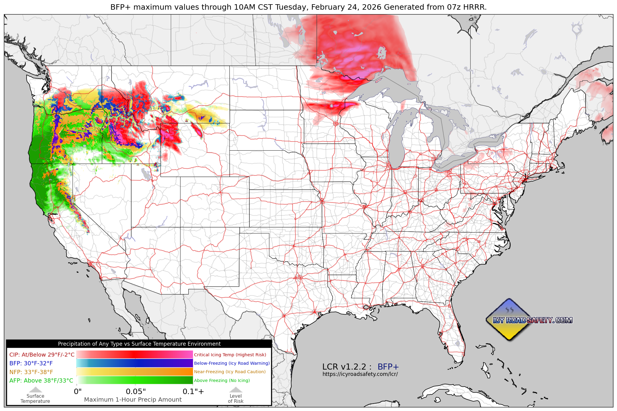 If your area is shown in a LCR risk area, it means the models are plotting conditions favorable for icy roads if the forecasted precipitation actually does occur.