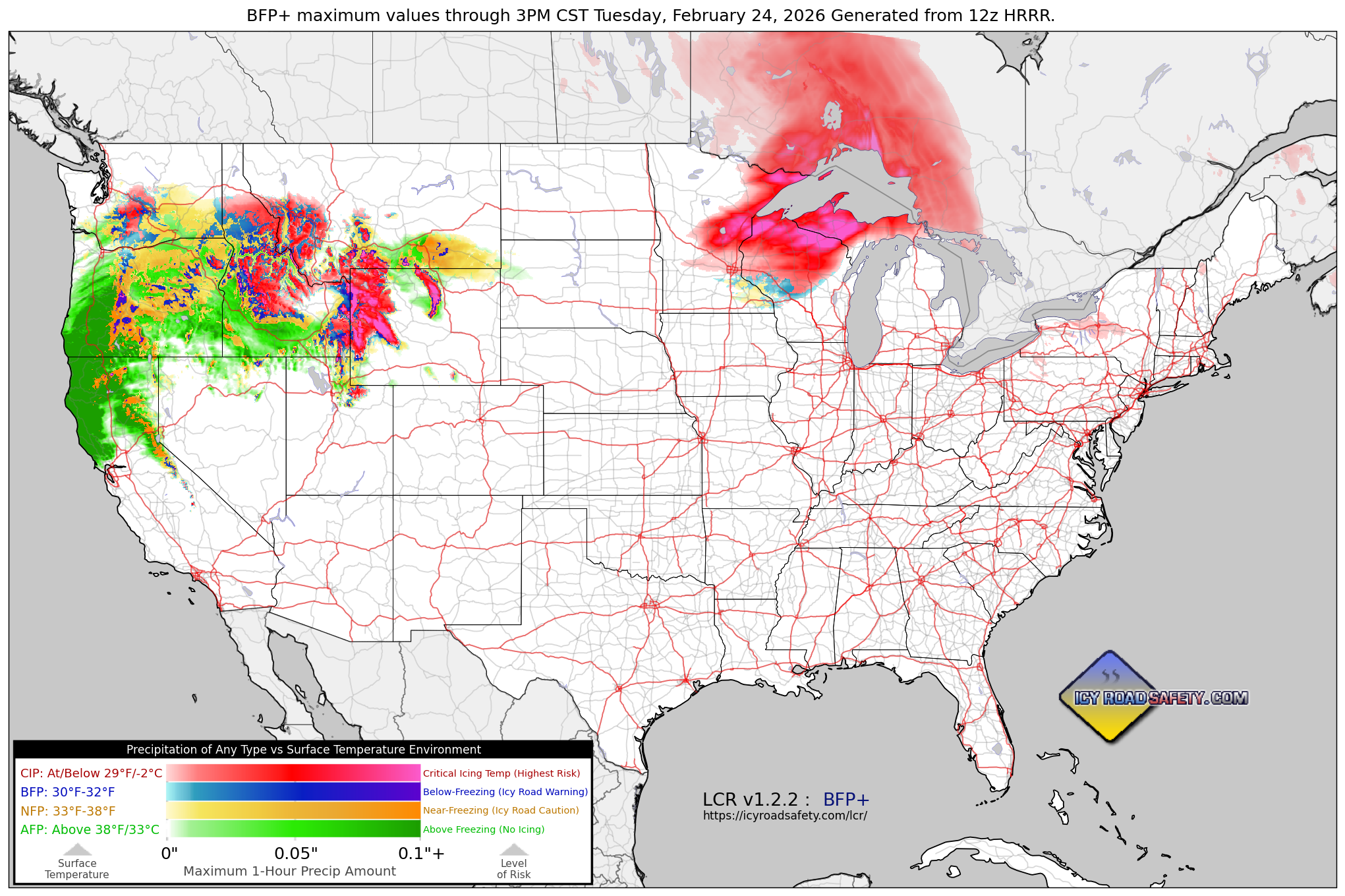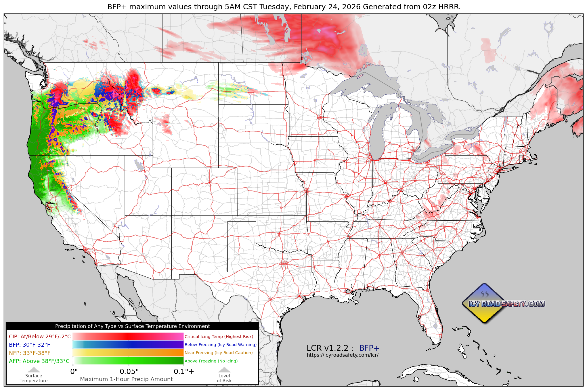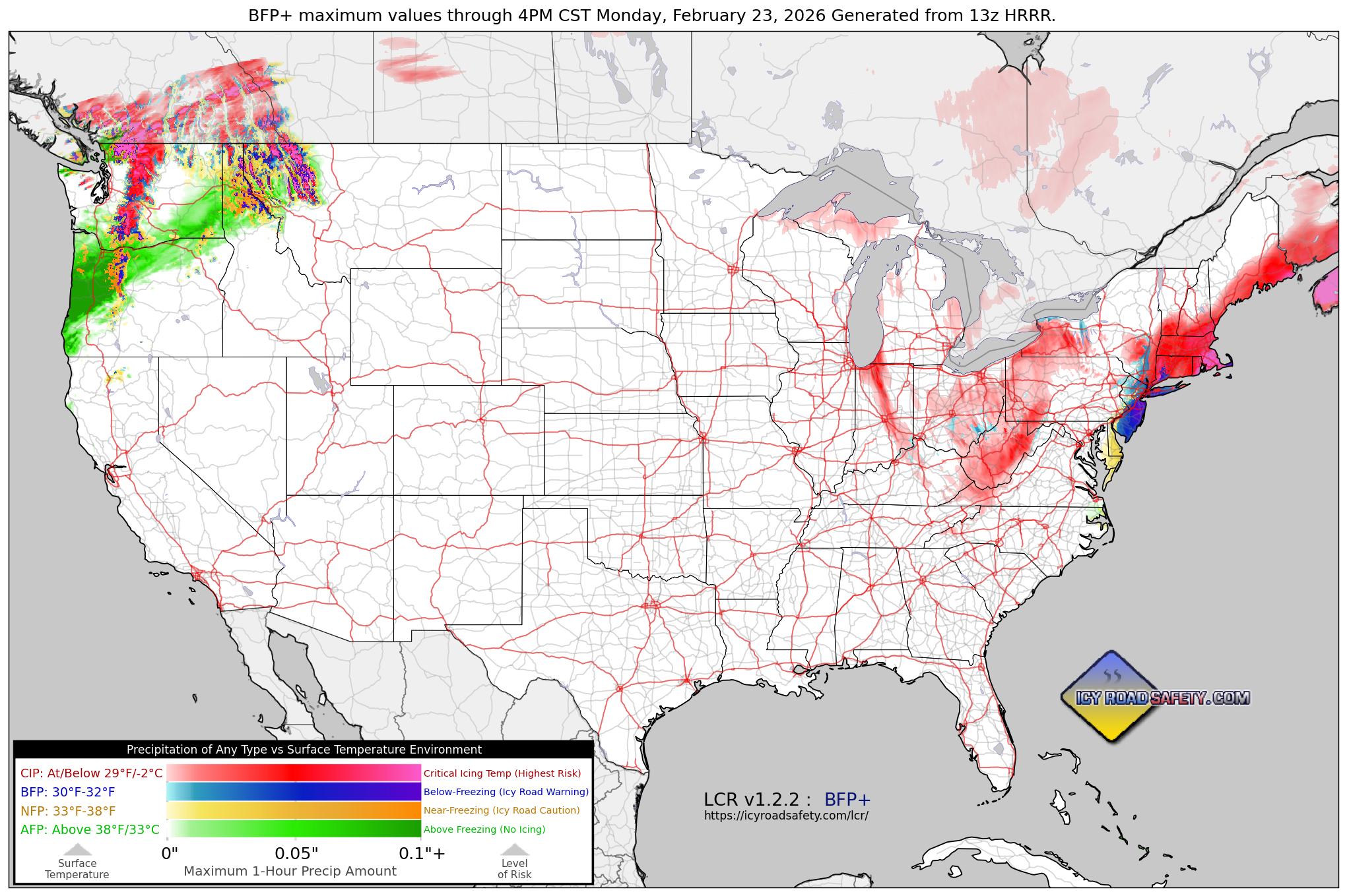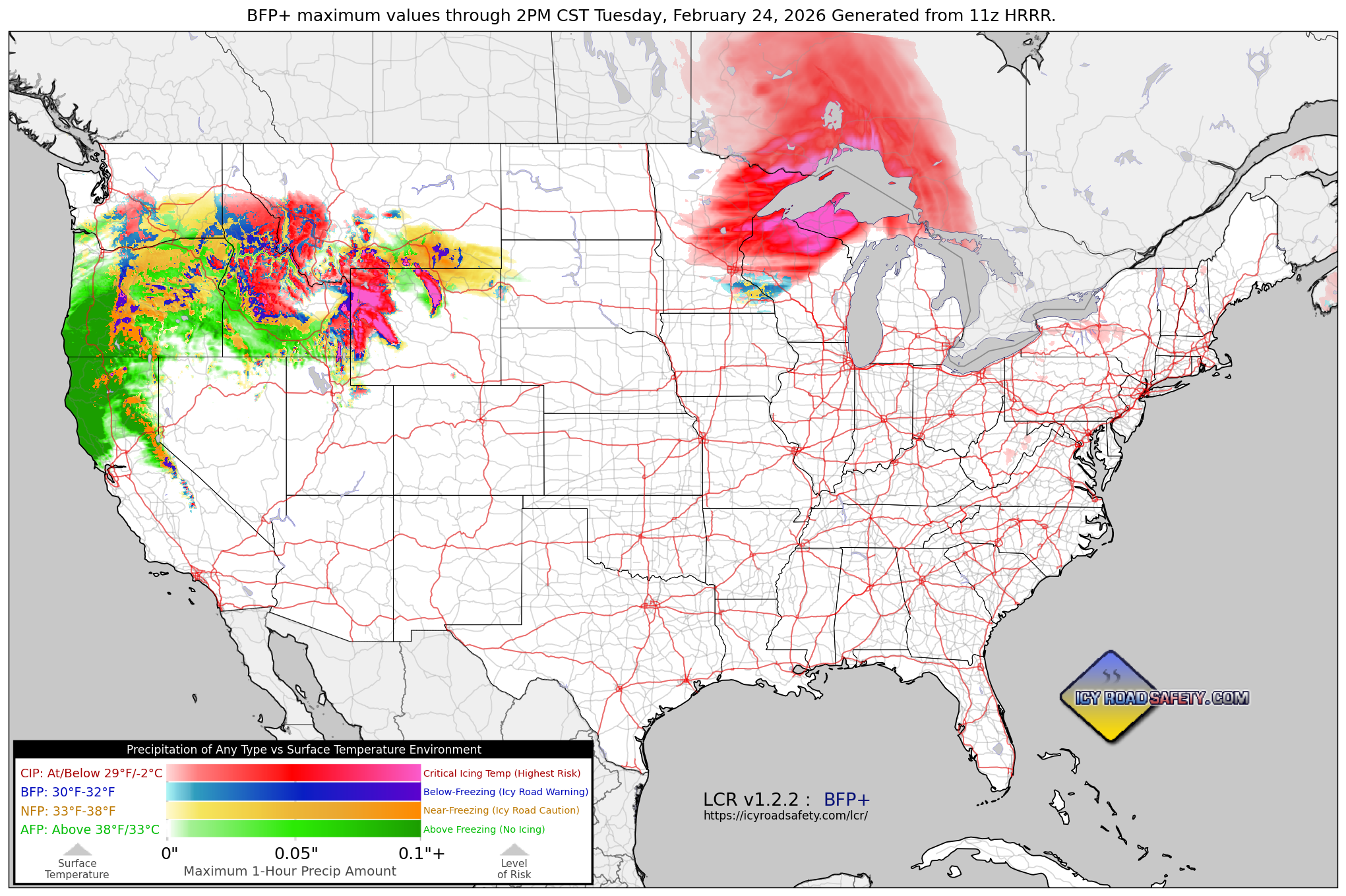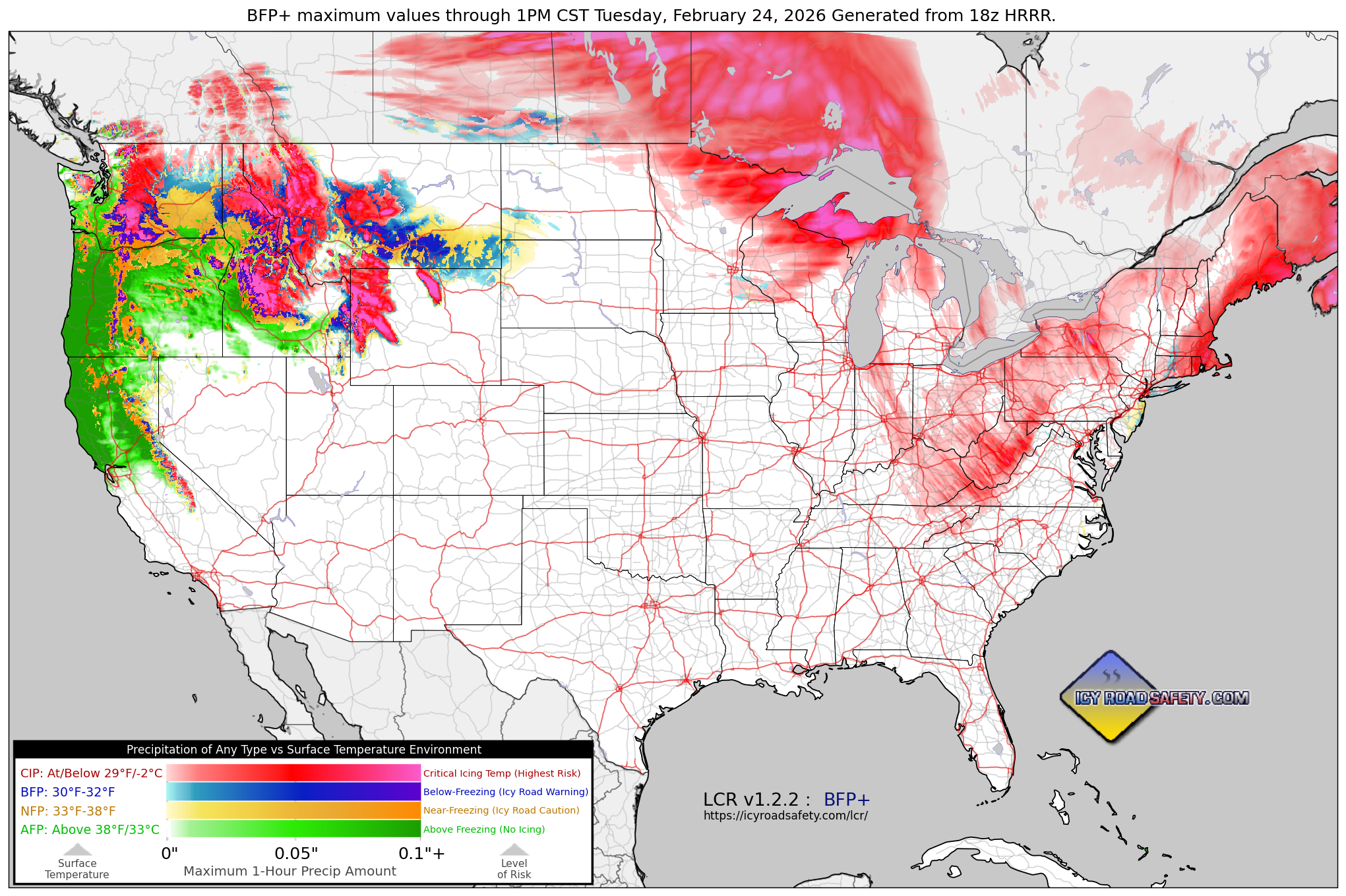 If your area is shown in a LCR risk area, it means the models are plotting conditions favorable for icy roads if the forecasted precipitation actually does occur.